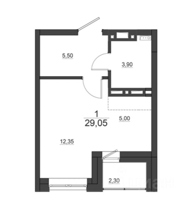 выделенная зона кухни с выходом на балкон