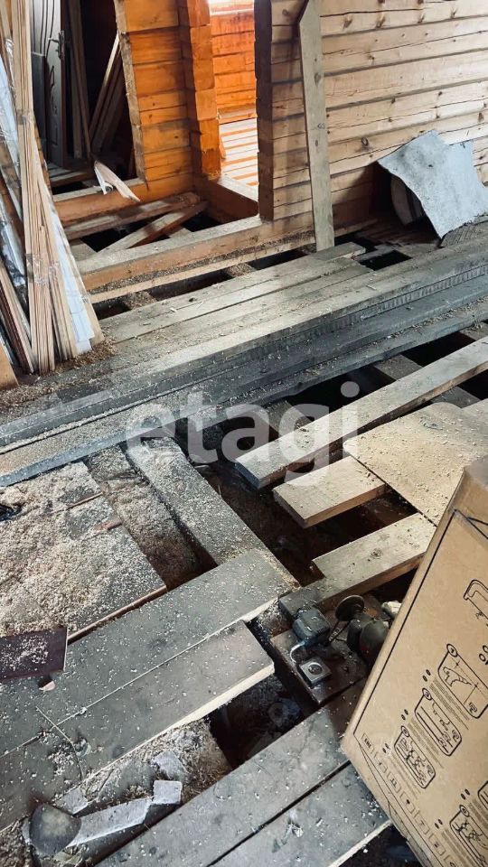Дом: Двухэтажное здание без балконов, материал наружных и внутренних стен - брус, окна пластиковые. Поставлены окна и входные двери: двери металлические, окна пластиковые, крыша металлочерепица. Количество комнат: 8, разделены внутренними стенами из бруса (не установлены перекрытия между этажами), две террасы (S 9 кв.м.