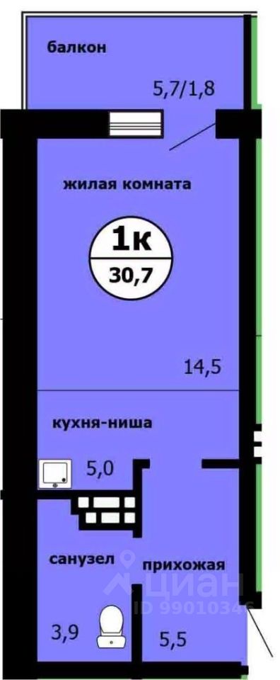 Продаётся студия в сданном доме (Машиностроителей, 31А (Дом 1 Корпус 2)), срок сдачи: IV-кв. 2025, общей площадью 30.1 кв.м., на 5 этаже.