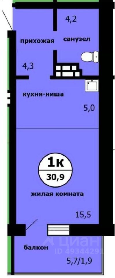 Продаётся студия в сданном доме (Машиностроителей, 31А (Дом 1 Корпус 2)), срок сдачи: IV-кв. 2025, общей площадью 30.4 кв.м., на 5 этаже.