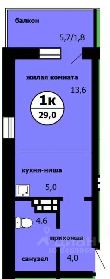 Продаётся студия в сданном доме (Машиностроителей, 31А (Дом 1 Корпус 2)), срок сдачи: IV-кв. 2025, общей площадью 28.4 кв.м., на 7 этаже.