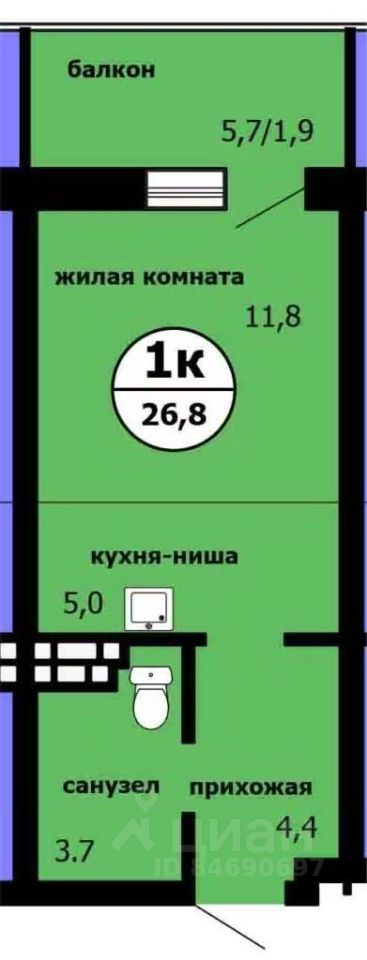 продам 1-к, Машиностроителей проспект, 1 корп. 2 стр.3 907 200 ₽