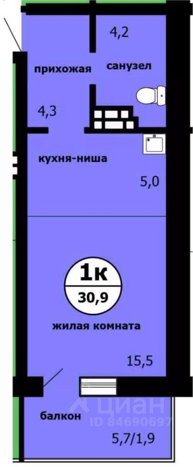 Продаётся студия в сданном доме (Машиностроителей, 31А (Дом 1 Корпус 2)), срок сдачи: IV-кв. 2025, общей площадью 30.4 кв.м., на 5 этаже.