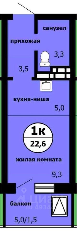 Продаётся студия в сданном доме (Машиностроителей, 31А (Дом 1 Корпус 2)), срок сдачи: IV-кв. 2025, общей площадью 22.3 кв.м., на 6 этаже.