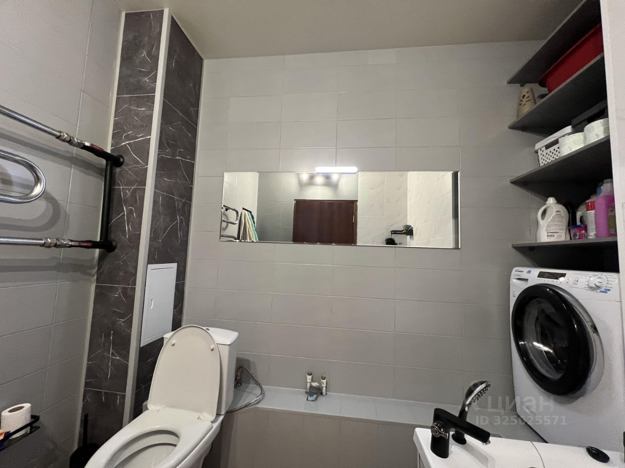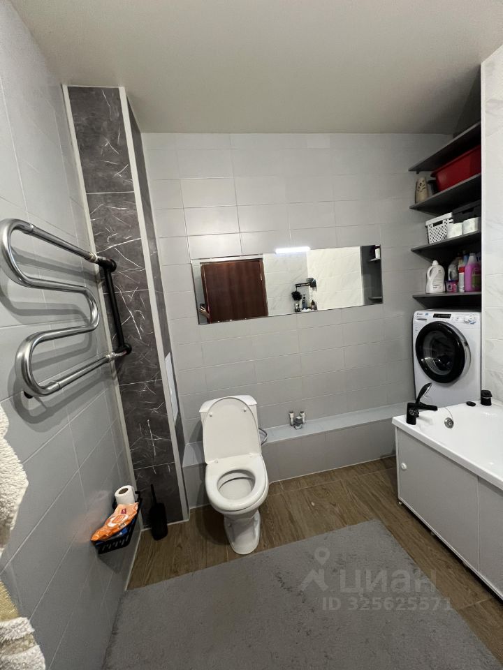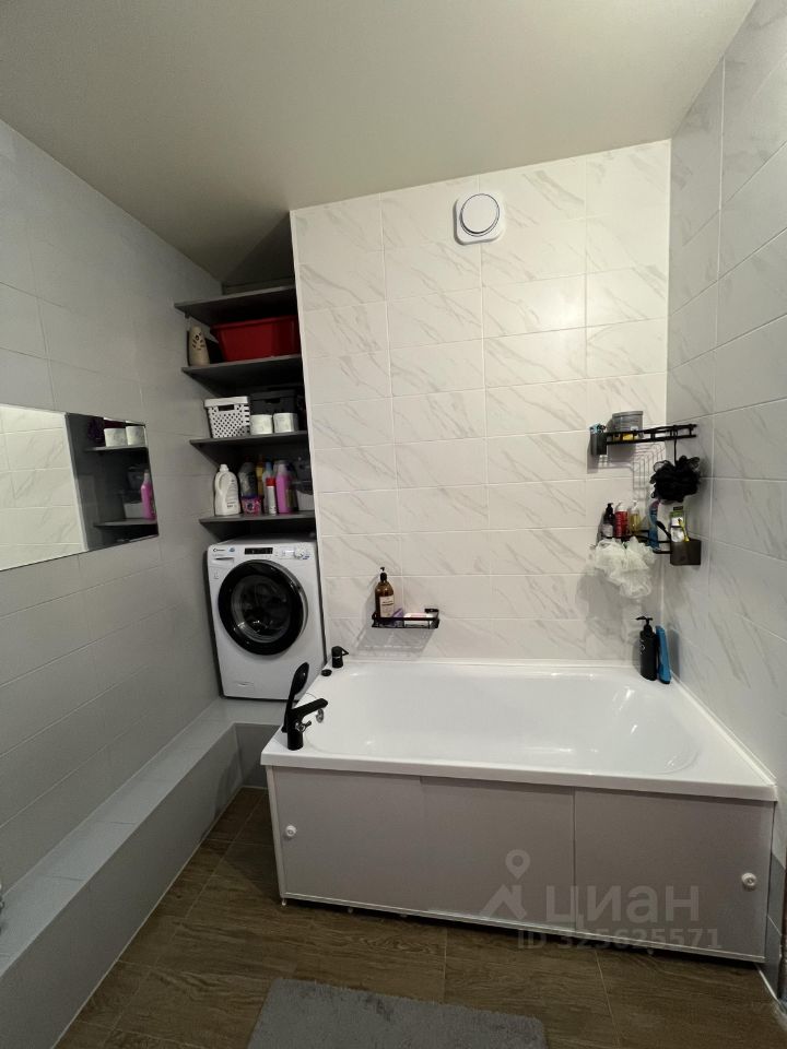 Свежий ремонт в санузле, стиральная машинка, зеркало, новая ванна.