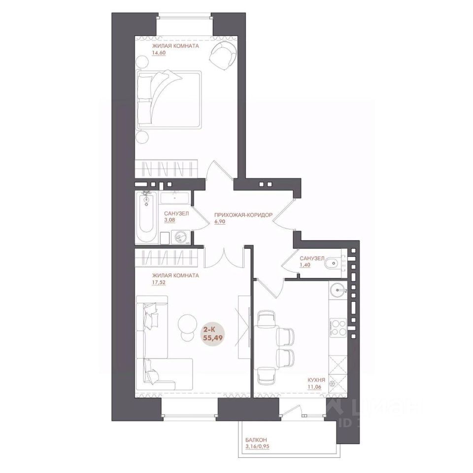 продам 2-к, 26 Бакинских Комиссаров, 3а ст26 936 250 ₽