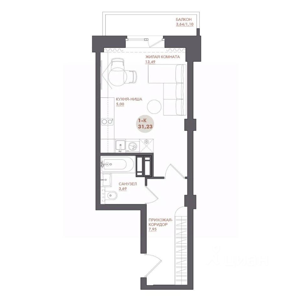 продам 1-к, 26 Бакинских Комиссаров, 3а ст24 309 740 ₽
