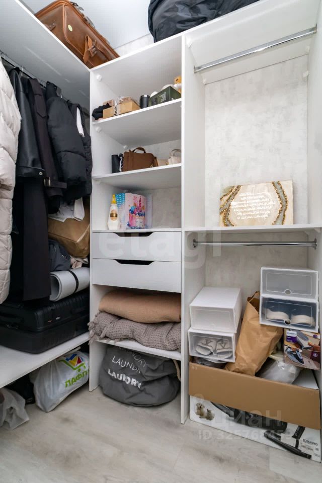 В квартире 2 спальные комнаты, одна без мебельного наполнения, в ней предполагалась детская. А в другой все обставлено согласно стандартам эргономики! Находится в ней шикарная кровать кинг-сайз выполненная из дерева и спинкой из самого трендового велюрового текстиля-Тэдди. Очень приятный на ощупь и мягок для опоры головы. Также в спальне есть множество систем хранения, а также прекрасный туалетный столик с зеркалом. Все фасады состоят из МДФ, что является одним из лучших и дорогих мебельных материалов!