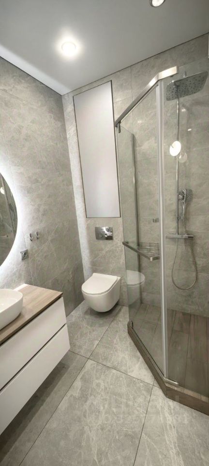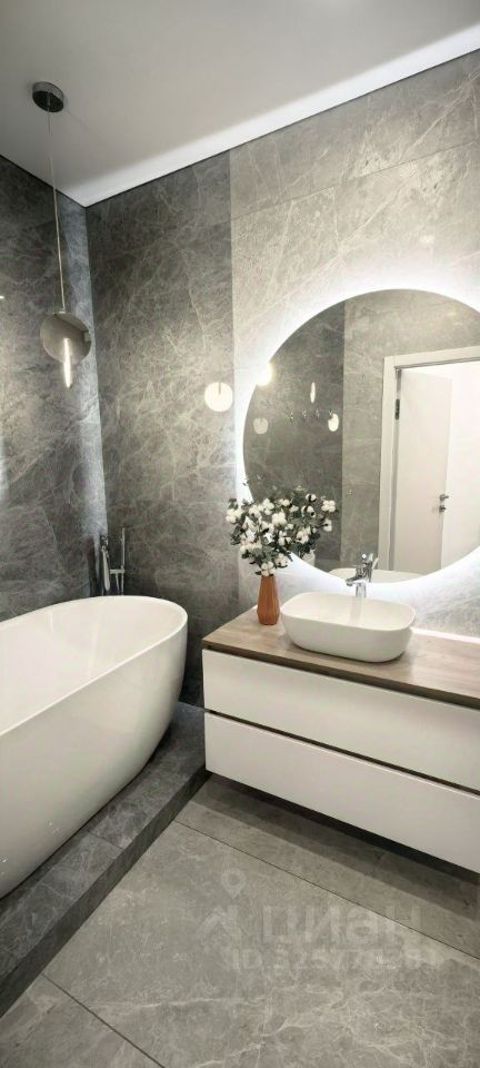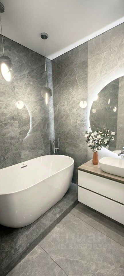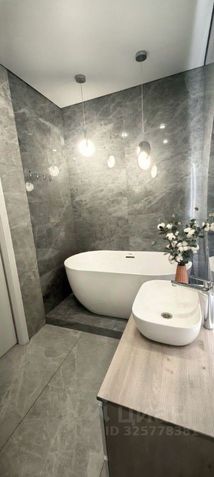 В квартире выполнен современный ремонт в светлых тонах, который создает ощущение простора и уюта. Два санузла отделаны керамогранитом, один из них оборудован стильной ванной и душевой кабиной. Имеется балкон и вместительный гардеробный шкаф. Межкомнатные двери изготовлены из высококачественных материалов. Высота потолков достигает 2,75 метра, что значительно выше стандартных показателей.
