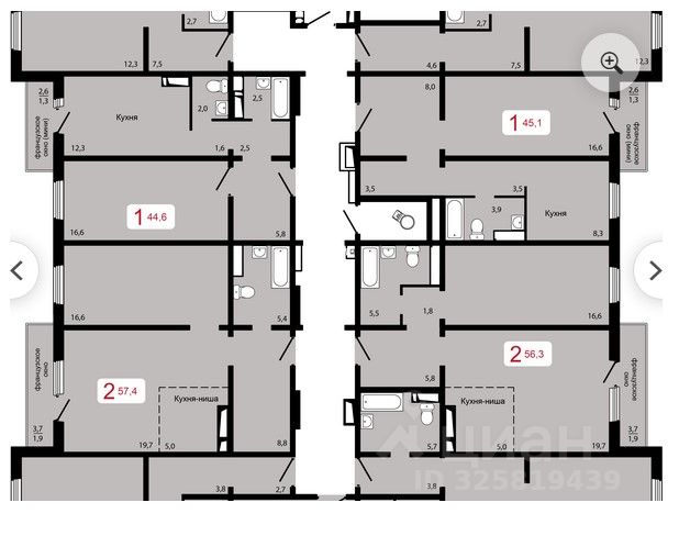 В наличии 1 комнатная на 4 этаже 45,1 кв.м.