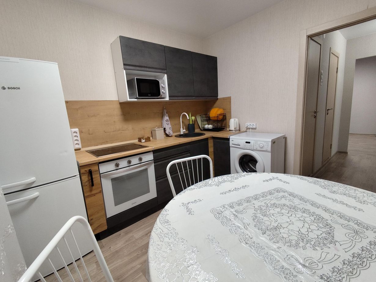 Техника: холодильник, варочная панель, духовой шкаф, чайник, стиральная машина, телевизор, проведен Wi-Fi. Мебель: удобная двухспальная кровать с матрасом, вместительный шкаф, диван-кровать, ТВ-зона со шкафами для хранения, обеденная зона, кухонный гарнитур.