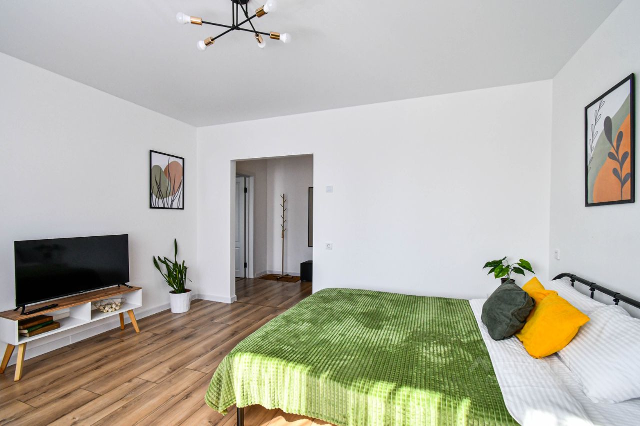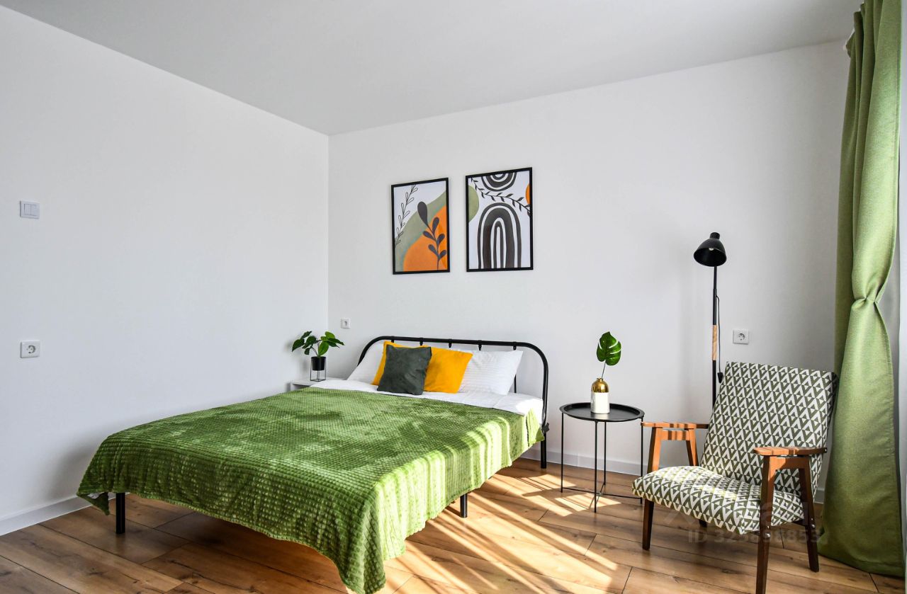 От собственника. Полностью оборудованная светлая квартира с яркими акцентами. Есть все необходимое для проживания : мебель, мелкая и крупная бытовая техника, посуда, текстиль. Двор и дом новый, закрытая парковка, три квартиры на этаже, тихо и спокойно. В каждой комнате кровать 160 на 200, но можно при необходимости заменить на новый диван, так же в спальне добавился новый стеллаж для одежды, его нет на фото. Все коммунальные платежи, интернет, телевидение, счетчики включены в стоимость аренды. Возможна сдача в аренду на короткий срок от 1 месяца.