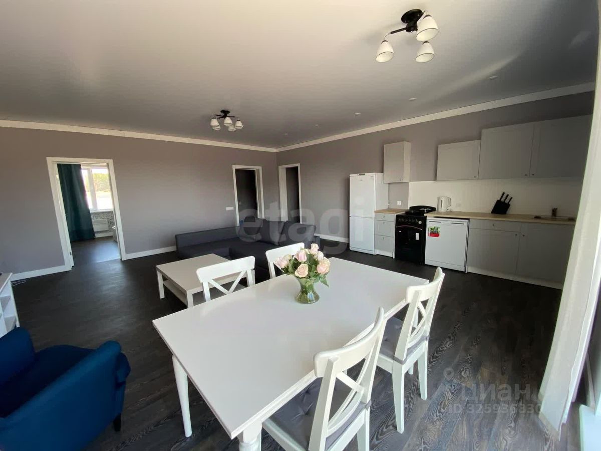 Объект отличается продуманной планировкой с просторными комнатами и качественной отделкой. Дом одноэтажный, что конечно удобно для постоянного проживания. Светлая просторная кухня-гостиная с панорамными окнами, две спальни, просторный санузел и встроенная терраса, расширяющая жилое пространство.