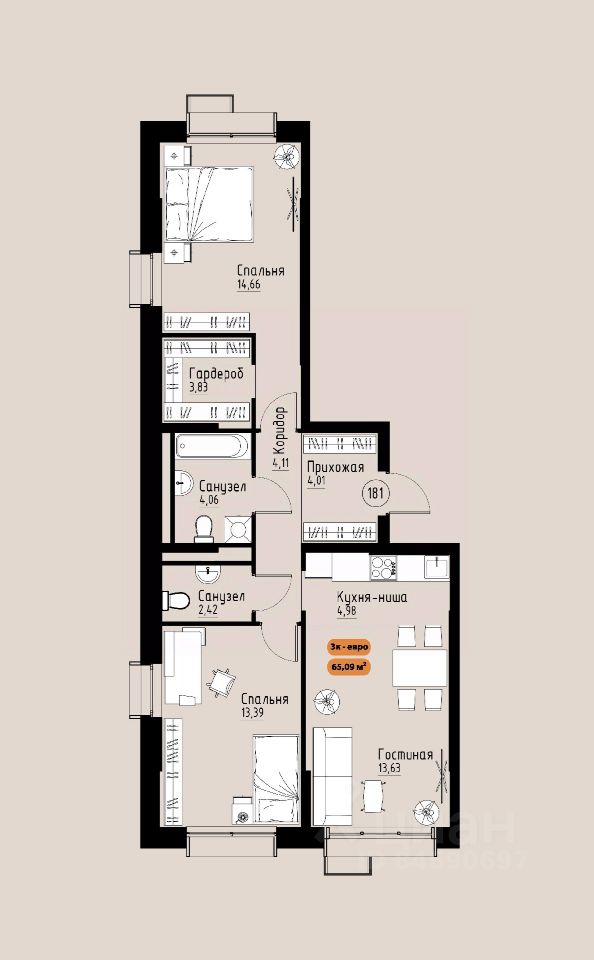Продаётся 3-комнатная квартира в строящемся доме (Премьер парк), срок сдачи: III-кв. 2029, общей площадью 65.09 кв.м., на 14 этаже. Жилой комплекс ''Премьер Парк'' расположен в живописном микрорайоне Тихие Зори города Красноярска, неподалеку от реки Енисей и знаменитого железнодорожного моста, удостоенного гран-при наравне с Эйфелевой башней. Вблизи комплекса находятся такие достопримечательности, как фан-парк ''Бобровый Лог'', заповедник ''Столбы'' и река Базаиха с её живописной поймой. Чтобы провести время на природе понадобиться потратить всего несколько минут на дорогу. Преимущества близкого расположения к заповеднику ''Столбы'' и фан-парку ''Бобровый Лог'' делают ''Премьер Парк'' идеальным выбором для тех, кто ценит активный и здоровый образ жизни, природу и удобства современной инфраструктуры. Жители могут легко сочетать городской комфорт с активным отдыхом на природе, наслаждаясь лучшими из обоих миров. Развитая транспортная инфраструктура позволяет добраться до центра города всего за 10 минут. Кроме того, рядом расположен спортивно-зрелищный центр ''Платинум Арена'', принимающий большое количество развлекательных и спортивных мероприятий различного масштаба. Около 2000 тысяч квадратных метров займёт ритейл с нежилыми помещениями , в которых разместяться магазины, кафе, рестораны, кофейни.Что избавит жителей жилого комплекса от необходимости лишний покидать территорию своего дома. Первая очередь строительства жилого комплекса ''Премьер Парк'' ознаменует начало создания нового уникального микрорайона с современной архитектурой и особым подходом к комфортному и гармоничному проживанию. Одной из архитектурных особенностей комплекса станет дом, построенный на стилобате, на котором будет размещено благоустройство. Архитектурным акцентом станет арка, соединяющая секции дома между собой. Квартиры с просторными террасами на верхних и первых этажах обеспечат отличное времяпрепровождение для всей семьи, а также будут доступны террасы общего пользования, которые будут располагаться на переходных секциях, 7 этажах. Вообразите себе уютное утро, когда вы выходите на просторную террасу с чашкой горячего кофе. С высоты открывается захватывающий вид на могущественный Енисей, железнодорожный мост и живописные окрестности. Вечером терраса становится идеальным местом для отдыха с семьей или друзьями. Здесь можно наслаждаться живописными закатами, которые окрашивают небо в невероятные оттенки оранжевого и розового, создавая атмосферу уюта и спокойствия. Для всех жителей комплекса предусмтрен бесплатный фитнес-зал, что позволит поддерживать здоровый образ жизни и укреплять здоровье, не покидая пределы жилого комплекса. Входные группы ЖК ''Премьер парк'' два общих входа для жителей всего дома , в которых будут располагаться детские игровые комнаты, зоны отдыха для деловых переговоров и соседких бесед. Дополнительно вход в подъезд предусмотрен в каждой жилой секции, в которых предусмотрены комнаты для хранения велосипедов и колясок. Благодаря подземной парковке, назем