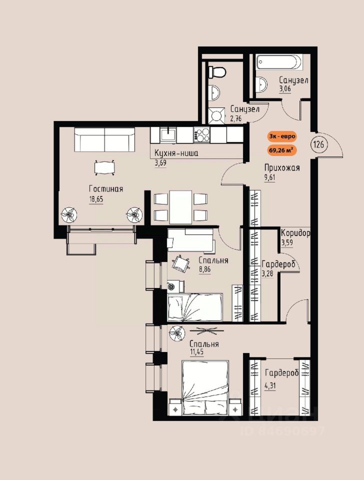 Продаётся 3-комнатная квартира в строящемся доме (Премьер парк), срок сдачи: III-кв. 2029, общей площадью 69.26 кв.м., на 13 этаже. Жилой комплекс ''Премьер Парк'' расположен в живописном микрорайоне Тихие Зори города Красноярска, неподалеку от реки Енисей и знаменитого железнодорожного моста, удостоенного гран-при наравне с Эйфелевой башней. Вблизи комплекса находятся такие достопримечательности, как фан-парк ''Бобровый Лог'', заповедник ''Столбы'' и река Базаиха с её живописной поймой. Чтобы провести время на природе понадобиться потратить всего несколько минут на дорогу.