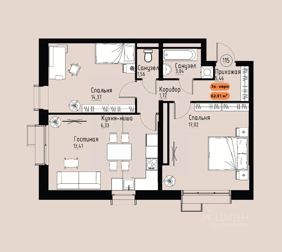 Продаётся 3-комнатная квартира в строящемся доме (Премьер парк), срок сдачи: III-кв. 2029, общей площадью 62.91 кв.м., на 16 этаже. Жилой комплекс ''Премьер Парк'' расположен в живописном микрорайоне Тихие Зори города Красноярска, неподалеку от реки Енисей и знаменитого железнодорожного моста, удостоенного гран-при наравне с Эйфелевой башней. Вблизи комплекса находятся такие достопримечательности, как фан-парк ''Бобровый Лог'', заповедник ''Столбы'' и река Базаиха с её живописной поймой. Чтобы провести время на природе понадобиться потратить всего несколько минут на дорогу. Преимущества близкого расположения к заповеднику ''Столбы'' и фан-парку ''Бобровый Лог'' делают ''Премьер Парк'' идеальным выбором для тех, кто ценит активный и здоровый образ жизни, природу и удобства современной инфраструктуры. Жители могут легко сочетать городской комфорт с активным отдыхом на природе, наслаждаясь лучшими из обоих миров. Развитая транспортная инфраструктура позволяет добраться до центра города всего за 10 минут. Кроме того, рядом расположен спортивно-зрелищный центр ''Платинум Арена'', принимающий большое количество развлекательных и спортивных мероприятий различного масштаба. Около 2000 тысяч квадратных метров займёт ритейл с нежилыми помещениями , в которых разместяться магазины, кафе, рестораны, кофейни.Что избавит жителей жилого комплекса от необходимости лишний покидать территорию своего дома. Первая очередь строительства жилого комплекса ''Премьер Парк'' ознаменует начало создания нового уникального микрорайона с современной архитектурой и особым подходом к комфортному и гармоничному проживанию. Одной из архитектурных особенностей комплекса станет дом, построенный на стилобате, на котором будет размещено благоустройство. Архитектурным акцентом станет арка, соединяющая секции дома между собой. Квартиры с просторными террасами на верхних и первых этажах обеспечат отличное времяпрепровождение для всей семьи, а также будут доступны террасы общего пользования, которые будут располагаться на переходных секциях, 7 этажах. Вообразите себе уютное утро, когда вы выходите на просторную террасу с чашкой горячего кофе. С высоты открывается захватывающий вид на могущественный Енисей, железнодорожный мост и живописные окрестности. Вечером терраса становится идеальным местом для отдыха с семьей или друзьями. Здесь можно наслаждаться живописными закатами, которые окрашивают небо в невероятные оттенки оранжевого и розового, создавая атмосферу уюта и спокойствия. Для всех жителей комплекса предусмтрен бесплатный фитнес-зал, что позволит поддерживать здоровый образ жизни и укреплять здоровье, не покидая пределы жилого комплекса. Входные группы ЖК ''Премьер парк'' два общих входа для жителей всего дома , в которых будут располагаться детские игровые комнаты, зоны отдыха для деловых переговоров и соседких бесед. Дополнительно вход в подъезд предусмотрен в каждой жилой секции, в которых предусмотрены комнаты для хранения велосипедов и колясок. Благодаря подземной парковке, назем