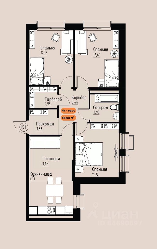 Продаётся 4-комнатная квартира в строящемся доме (Премьер парк), срок сдачи: III-кв. 2029, общей площадью 68.68 кв.м., на 15 этаже. Жилой комплекс ''Премьер Парк'' расположен в живописном микрорайоне Тихие Зори города Красноярска, неподалеку от реки Енисей и знаменитого железнодорожного моста, удостоенного гран-при наравне с Эйфелевой башней. Вблизи комплекса находятся такие достопримечательности, как фан-парк ''Бобровый Лог'', заповедник ''Столбы'' и река Базаиха с её живописной поймой. Чтобы провести время на природе понадобиться потратить всего несколько минут на дорогу. Преимущества близкого расположения к заповеднику ''Столбы'' и фан-парку ''Бобровый Лог'' делают ''Премьер Парк'' идеальным выбором для тех, кто ценит активный и здоровый образ жизни, природу и удобства современной инфраструктуры. Жители могут легко сочетать городской комфорт с активным отдыхом на природе, наслаждаясь лучшими из обоих миров. Развитая транспортная инфраструктура позволяет добраться до центра города всего за 10 минут. Кроме того, рядом расположен спортивно-зрелищный центр ''Платинум Арена'', принимающий большое количество развлекательных и спортивных мероприятий различного масштаба. Около 2000 тысяч квадратных метров займёт ритейл с нежилыми помещениями , в которых разместяться магазины, кафе, рестораны, кофейни.Что избавит жителей жилого комплекса от необходимости лишний покидать территорию своего дома. Первая очередь строительства жилого комплекса ''Премьер Парк'' ознаменует начало создания нового уникального микрорайона с современной архитектурой и особым подходом к комфортному и гармоничному проживанию. Одной из архитектурных особенностей комплекса станет дом, построенный на стилобате, на котором будет размещено благоустройство. Архитектурным акцентом станет арка, соединяющая секции дома между собой. Квартиры с просторными террасами на верхних и первых этажах обеспечат отличное времяпрепровождение для всей семьи, а также будут доступны террасы общего пользования, которые будут располагаться на переходных секциях, 7 этажах. Вообразите себе уютное утро, когда вы выходите на просторную террасу с чашкой горячего кофе. С высоты открывается захватывающий вид на могущественный Енисей, железнодорожный мост и живописные окрестности. Вечером терраса становится идеальным местом для отдыха с семьей или друзьями. Здесь можно наслаждаться живописными закатами, которые окрашивают небо в невероятные оттенки оранжевого и розового, создавая атмосферу уюта и спокойствия. Для всех жителей комплекса предусмтрен бесплатный фитнес-зал, что позволит поддерживать здоровый образ жизни и укреплять здоровье, не покидая пределы жилого комплекса. Входные группы ЖК ''Премьер парк'' два общих входа для жителей всего дома , в которых будут располагаться детские игровые комнаты, зоны отдыха для деловых переговоров и соседких бесед. Дополнительно вход в подъезд предусмотрен в каждой жилой секции, в которых предусмотрены комнаты для хранения велосипедов и колясок. Благодаря подземной парковке, назем
