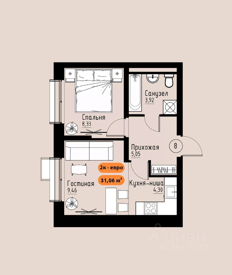 Продаётся 2-комнатная квартира в строящемся доме (Премьер парк), срок сдачи: III-кв. 2029, общей площадью 31.06 кв.м., на 2 этаже. Жилой комплекс ''Премьер Парк'' расположен в живописном микрорайоне Тихие Зори города Красноярска, неподалеку от реки Енисей и знаменитого железнодорожного моста, удостоенного гран-при наравне с Эйфелевой башней. Вблизи комплекса находятся такие достопримечательности, как фан-парк ''Бобровый Лог'', заповедник ''Столбы'' и река Базаиха с её живописной поймой. Чтобы провести время на природе понадобиться потратить всего несколько минут на дорогу.