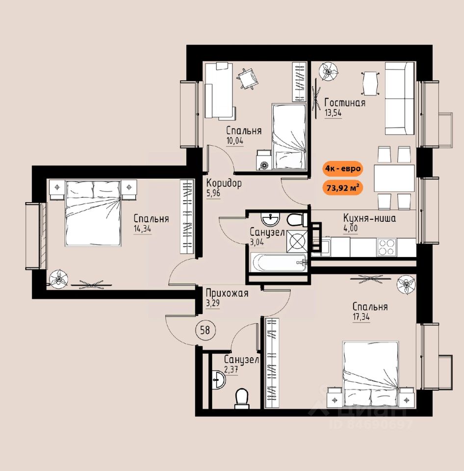 Продаётся 4-комнатная квартира в строящемся доме (Премьер парк), срок сдачи: III-кв. 2029, общей площадью 73.92 кв.м., на 6 этаже. Жилой комплекс ''Премьер Парк'' расположен в живописном микрорайоне Тихие Зори города Красноярска, неподалеку от реки Енисей и знаменитого железнодорожного моста, удостоенного гран-при наравне с Эйфелевой башней. Вблизи комплекса находятся такие достопримечательности, как фан-парк ''Бобровый Лог'', заповедник ''Столбы'' и река Базаиха с её живописной поймой. Чтобы провести время на природе понадобиться потратить всего несколько минут на дорогу.