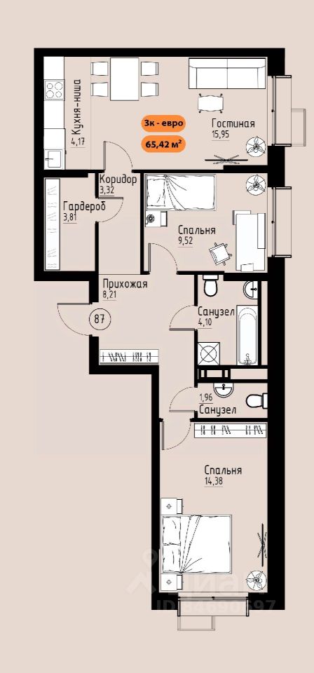 Продаётся 3-комнатная квартира в строящемся доме (Премьер парк), срок сдачи: III-кв. 2029, общей площадью 65.42 кв.м., на 7 этаже. Жилой комплекс ''Премьер Парк'' расположен в живописном микрорайоне Тихие Зори города Красноярска, неподалеку от реки Енисей и знаменитого железнодорожного моста, удостоенного гран-при наравне с Эйфелевой башней. Вблизи комплекса находятся такие достопримечательности, как фан-парк ''Бобровый Лог'', заповедник ''Столбы'' и река Базаиха с её живописной поймой. Чтобы провести время на природе понадобиться потратить всего несколько минут на дорогу. Преимущества близкого расположения к заповеднику ''Столбы'' и фан-парку ''Бобровый Лог'' делают ''Премьер Парк'' идеальным выбором для тех, кто ценит активный и здоровый образ жизни, природу и удобства современной инфраструктуры. Жители могут легко сочетать городской комфорт с активным отдыхом на природе, наслаждаясь лучшими из обоих миров. Развитая транспортная инфраструктура позволяет добраться до центра города всего за 10 минут. Кроме того, рядом расположен спортивно-зрелищный центр ''Платинум Арена'', принимающий большое количество развлекательных и спортивных мероприятий различного масштаба. Около 2000 тысяч квадратных метров займёт ритейл с нежилыми помещениями , в которых разместяться магазины, кафе, рестораны, кофейни.Что избавит жителей жилого комплекса от необходимости лишний покидать территорию своего дома. Первая очередь строительства жилого комплекса ''Премьер Парк'' ознаменует начало создания нового уникального микрорайона с современной архитектурой и особым подходом к комфортному и гармоничному проживанию. Одной из архитектурных особенностей комплекса станет дом, построенный на стилобате, на котором будет размещено благоустройство. Архитектурным акцентом станет арка, соединяющая секции дома между собой. Квартиры с просторными террасами на верхних и первых этажах обеспечат отличное времяпрепровождение для всей семьи, а также будут доступны террасы общего пользования, которые будут располагаться на переходных секциях, 7 этажах. Вообразите себе уютное утро, когда вы выходите на просторную террасу с чашкой горячего кофе. С высоты открывается захватывающий вид на могущественный Енисей, железнодорожный мост и живописные окрестности. Вечером терраса становится идеальным местом для отдыха с семьей или друзьями. Здесь можно наслаждаться живописными закатами, которые окрашивают небо в невероятные оттенки оранжевого и розового, создавая атмосферу уюта и спокойствия. Для всех жителей комплекса предусмтрен бесплатный фитнес-зал, что позволит поддерживать здоровый образ жизни и укреплять здоровье, не покидая пределы жилого комплекса. Входные группы ЖК ''Премьер парк'' два общих входа для жителей всего дома , в которых будут располагаться детские игровые комнаты, зоны отдыха для деловых переговоров и соседких бесед. Дополнительно вход в подъезд предусмотрен в каждой жилой секции, в которых предусмотрены комнаты для хранения велосипедов и колясок. Благодаря подземной парковке, наземн