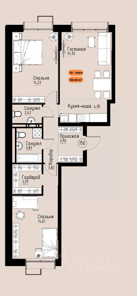 Продаётся 2-комнатная квартира в строящемся доме (Премьер парк), срок сдачи: III-кв. 2029, общей площадью 66.66 кв.м., на 11 этаже. Жилой комплекс ''Премьер Парк'' расположен в живописном микрорайоне Тихие Зори города Красноярска, неподалеку от реки Енисей и знаменитого железнодорожного моста, удостоенного гран-при наравне с Эйфелевой башней. Вблизи комплекса находятся такие достопримечательности, как фан-парк ''Бобровый Лог'', заповедник ''Столбы'' и река Базаиха с её живописной поймой. Чтобы провести время на природе понадобиться потратить всего несколько минут на дорогу. Преимущества близкого расположения к заповеднику ''Столбы'' и фан-парку ''Бобровый Лог'' делают ''Премьер Парк'' идеальным выбором для тех, кто ценит активный и здоровый образ жизни, природу и удобства современной инфраструктуры. Жители могут легко сочетать городской комфорт с активным отдыхом на природе, наслаждаясь лучшими из обоих миров. Развитая транспортная инфраструктура позволяет добраться до центра города всего за 10 минут. Кроме того, рядом расположен спортивно-зрелищный центр ''Платинум Арена'', принимающий большое количество развлекательных и спортивных мероприятий различного масштаба. Около 2000 тысяч квадратных метров займёт ритейл с нежилыми помещениями , в которых разместяться магазины, кафе, рестораны, кофейни.Что избавит жителей жилого комплекса от необходимости лишний покидать территорию своего дома. Первая очередь строительства жилого комплекса ''Премьер Парк'' ознаменует начало создания нового уникального микрорайона с современной архитектурой и особым подходом к комфортному и гармоничному проживанию. Одной из архитектурных особенностей комплекса станет дом, построенный на стилобате, на котором будет размещено благоустройство. Архитектурным акцентом станет арка, соединяющая секции дома между собой. Квартиры с просторными террасами на верхних и первых этажах обеспечат отличное времяпрепровождение для всей семьи, а также будут доступны террасы общего пользования, которые будут располагаться на переходных секциях, 7 этажах. Вообразите себе уютное утро, когда вы выходите на просторную террасу с чашкой горячего кофе. С высоты открывается захватывающий вид на могущественный Енисей, железнодорожный мост и живописные окрестности. Вечером терраса становится идеальным местом для отдыха с семьей или друзьями. Здесь можно наслаждаться живописными закатами, которые окрашивают небо в невероятные оттенки оранжевого и розового, создавая атмосферу уюта и спокойствия. Для всех жителей комплекса предусмтрен бесплатный фитнес-зал, что позволит поддерживать здоровый образ жизни и укреплять здоровье, не покидая пределы жилого комплекса. Входные группы ЖК ''Премьер парк'' два общих входа для жителей всего дома , в которых будут располагаться детские игровые комнаты, зоны отдыха для деловых переговоров и соседких бесед. Дополнительно вход в подъезд предусмотрен в каждой жилой секции, в которых предусмотрены комнаты для хранения велосипедов и колясок. Благодаря подземной парковке, назем