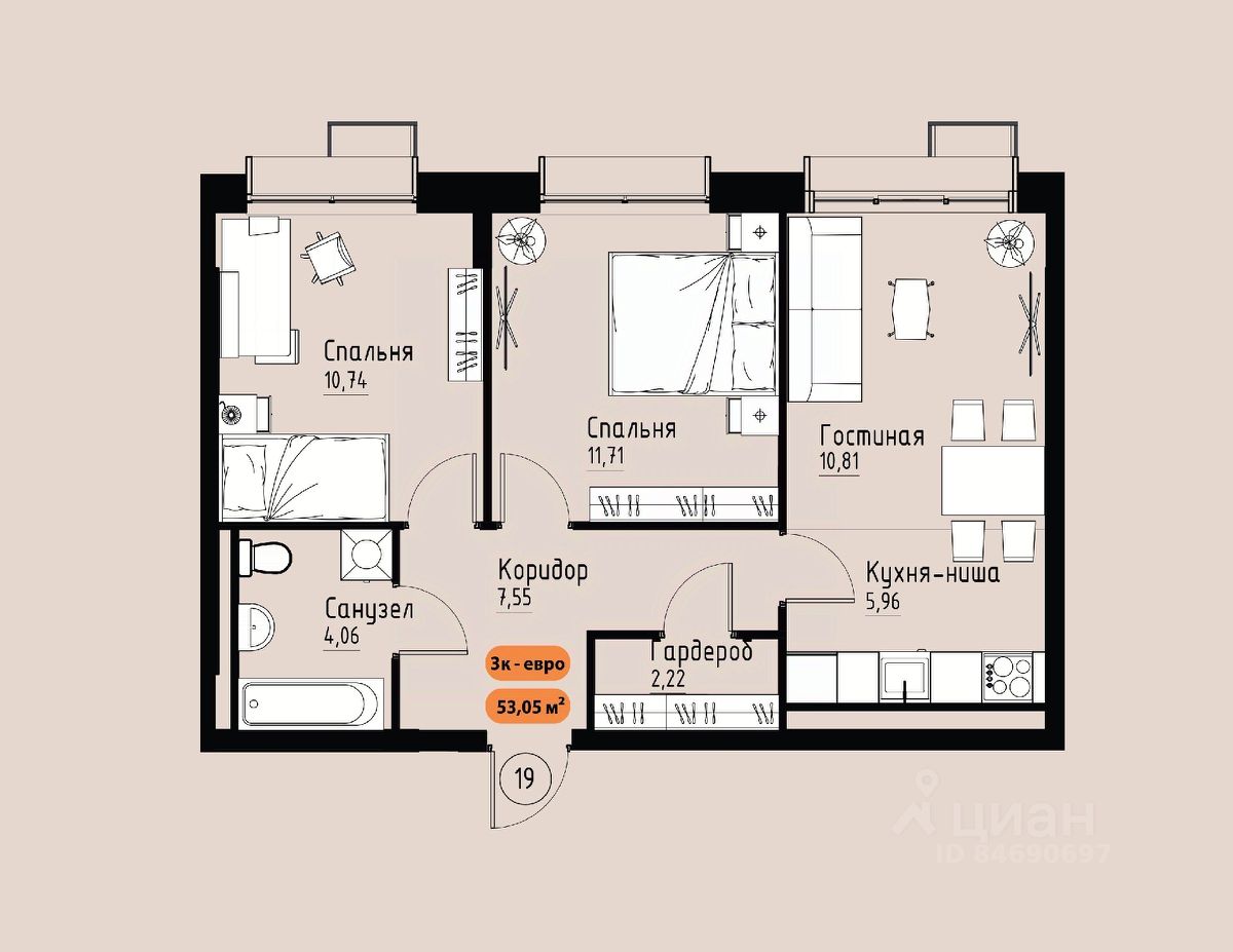 Продаётся 3-комнатная квартира в строящемся доме (Премьер парк), срок сдачи: III-кв. 2029, общей площадью 53.05 кв.м., на 4 этаже. Жилой комплекс ''Премьер Парк'' расположен в живописном микрорайоне Тихие Зори города Красноярска, неподалеку от реки Енисей и знаменитого железнодорожного моста, удостоенного гран-при наравне с Эйфелевой башней. Вблизи комплекса находятся такие достопримечательности, как фан-парк ''Бобровый Лог'', заповедник ''Столбы'' и река Базаиха с её живописной поймой. Чтобы провести время на природе понадобиться потратить всего несколько минут на дорогу.