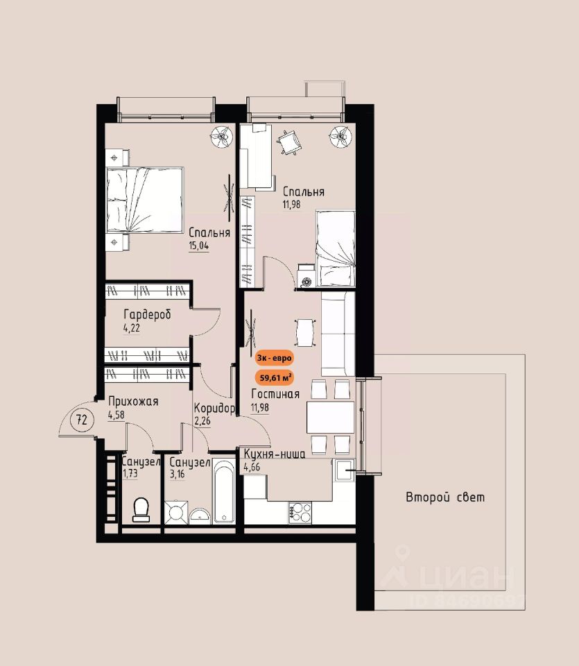 Продаётся 3-комнатная квартира в строящемся доме (Премьер парк), срок сдачи: III-кв. 2029, общей площадью 59.61 кв.м., на 8 этаже. Жилой комплекс ''Премьер Парк'' расположен в живописном микрорайоне Тихие Зори города Красноярска, неподалеку от реки Енисей и знаменитого железнодорожного моста, удостоенного гран-при наравне с Эйфелевой башней. Вблизи комплекса находятся такие достопримечательности, как фан-парк ''Бобровый Лог'', заповедник ''Столбы'' и река Базаиха с её живописной поймой. Чтобы провести время на природе понадобиться потратить всего несколько минут на дорогу.