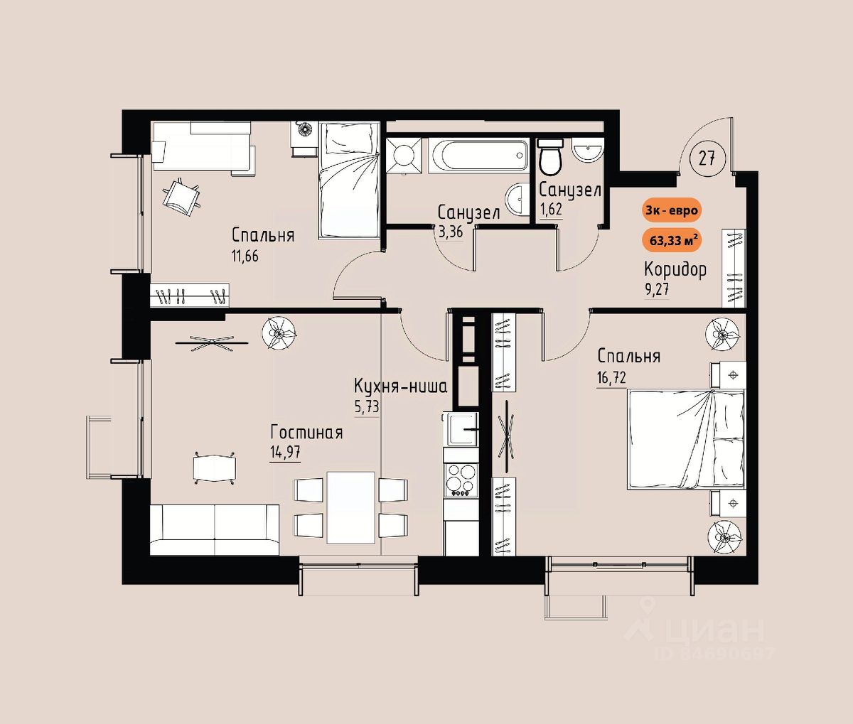 Продаётся 3-комнатная квартира в строящемся доме (Премьер парк), срок сдачи: III-кв. 2029, общей площадью 63.33 кв.м., на 8 этаже. Жилой комплекс ''Премьер Парк'' расположен в живописном микрорайоне Тихие Зори города Красноярска, неподалеку от реки Енисей и знаменитого железнодорожного моста, удостоенного гран-при наравне с Эйфелевой башней. Вблизи комплекса находятся такие достопримечательности, как фан-парк ''Бобровый Лог'', заповедник ''Столбы'' и река Базаиха с её живописной поймой. Чтобы провести время на природе понадобиться потратить всего несколько минут на дорогу. Преимущества близкого расположения к заповеднику ''Столбы'' и фан-парку ''Бобровый Лог'' делают ''Премьер Парк'' идеальным выбором для тех, кто ценит активный и здоровый образ жизни, природу и удобства современной инфраструктуры. Жители могут легко сочетать городской комфорт с активным отдыхом на природе, наслаждаясь лучшими из обоих миров. Развитая транспортная инфраструктура позволяет добраться до центра города всего за 10 минут. Кроме того, рядом расположен спортивно-зрелищный центр ''Платинум Арена'', принимающий большое количество развлекательных и спортивных мероприятий различного масштаба. Около 2000 тысяч квадратных метров займёт ритейл с нежилыми помещениями , в которых разместяться магазины, кафе, рестораны, кофейни.Что избавит жителей жилого комплекса от необходимости лишний покидать территорию своего дома. Первая очередь строительства жилого комплекса ''Премьер Парк'' ознаменует начало создания нового уникального микрорайона с современной архитектурой и особым подходом к комфортному и гармоничному проживанию. Одной из архитектурных особенностей комплекса станет дом, построенный на стилобате, на котором будет размещено благоустройство. Архитектурным акцентом станет арка, соединяющая секции дома между собой. Квартиры с просторными террасами на верхних и первых этажах обеспечат отличное времяпрепровождение для всей семьи, а также будут доступны террасы общего пользования, которые будут располагаться на переходных секциях, 7 этажах. Вообразите себе уютное утро, когда вы выходите на просторную террасу с чашкой горячего кофе. С высоты открывается захватывающий вид на могущественный Енисей, железнодорожный мост и живописные окрестности. Вечером терраса становится идеальным местом для отдыха с семьей или друзьями. Здесь можно наслаждаться живописными закатами, которые окрашивают небо в невероятные оттенки оранжевого и розового, создавая атмосферу уюта и спокойствия. Для всех жителей комплекса предусмтрен бесплатный фитнес-зал, что позволит поддерживать здоровый образ жизни и укреплять здоровье, не покидая пределы жилого комплекса. Входные группы ЖК ''Премьер парк'' два общих входа для жителей всего дома , в которых будут располагаться детские игровые комнаты, зоны отдыха для деловых переговоров и соседких бесед. Дополнительно вход в подъезд предусмотрен в каждой жилой секции, в которых предусмотрены комнаты для хранения велосипедов и колясок. Благодаря подземной парковке, наземн