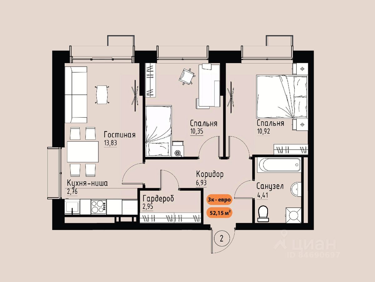 Продаётся 3-комнатная квартира в строящемся доме (Премьер парк), срок сдачи: III-кв. 2029, общей площадью 52.15 кв.м., на 7 этаже. Жилой комплекс ''Премьер Парк'' расположен в живописном микрорайоне Тихие Зори города Красноярска, неподалеку от реки Енисей и знаменитого железнодорожного моста, удостоенного гран-при наравне с Эйфелевой башней. Вблизи комплекса находятся такие достопримечательности, как фан-парк ''Бобровый Лог'', заповедник ''Столбы'' и река Базаиха с её живописной поймой. Чтобы провести время на природе понадобиться потратить всего несколько минут на дорогу.