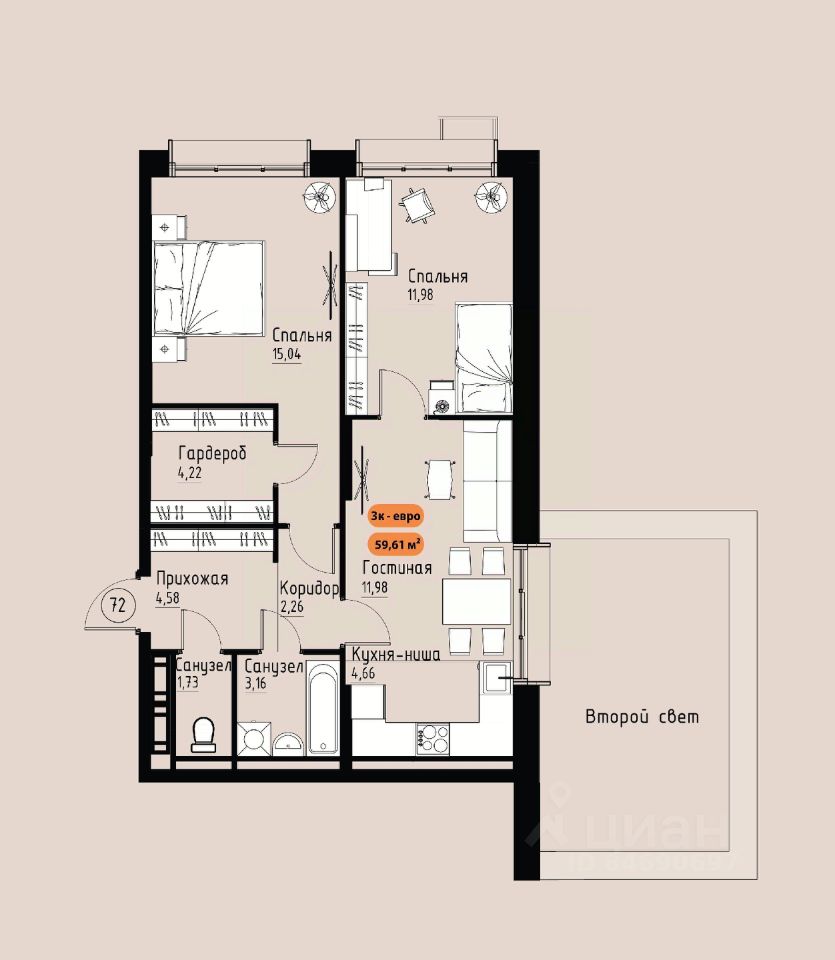 Продаётся 3-комнатная квартира в строящемся доме (Премьер парк), срок сдачи: III-кв. 2029, общей площадью 59.61 кв.м., на 14 этаже. Жилой комплекс ''Премьер Парк'' расположен в живописном микрорайоне Тихие Зори города Красноярска, неподалеку от реки Енисей и знаменитого железнодорожного моста, удостоенного гран-при наравне с Эйфелевой башней. Вблизи комплекса находятся такие достопримечательности, как фан-парк ''Бобровый Лог'', заповедник ''Столбы'' и река Базаиха с её живописной поймой. Чтобы провести время на природе понадобиться потратить всего несколько минут на дорогу. Преимущества близкого расположения к заповеднику ''Столбы'' и фан-парку ''Бобровый Лог'' делают ''Премьер Парк'' идеальным выбором для тех, кто ценит активный и здоровый образ жизни, природу и удобства современной инфраструктуры. Жители могут легко сочетать городской комфорт с активным отдыхом на природе, наслаждаясь лучшими из обоих миров. Развитая транспортная инфраструктура позволяет добраться до центра города всего за 10 минут. Кроме того, рядом расположен спортивно-зрелищный центр ''Платинум Арена'', принимающий большое количество развлекательных и спортивных мероприятий различного масштаба. Около 2000 тысяч квадратных метров займёт ритейл с нежилыми помещениями , в которых разместяться магазины, кафе, рестораны, кофейни.Что избавит жителей жилого комплекса от необходимости лишний покидать территорию своего дома. Первая очередь строительства жилого комплекса ''Премьер Парк'' ознаменует начало создания нового уникального микрорайона с современной архитектурой и особым подходом к комфортному и гармоничному проживанию. Одной из архитектурных особенностей комплекса станет дом, построенный на стилобате, на котором будет размещено благоустройство. Архитектурным акцентом станет арка, соединяющая секции дома между собой. Квартиры с просторными террасами на верхних и первых этажах обеспечат отличное времяпрепровождение для всей семьи, а также будут доступны террасы общего пользования, которые будут располагаться на переходных секциях, 7 этажах. Вообразите себе уютное утро, когда вы выходите на просторную террасу с чашкой горячего кофе. С высоты открывается захватывающий вид на могущественный Енисей, железнодорожный мост и живописные окрестности. Вечером терраса становится идеальным местом для отдыха с семьей или друзьями. Здесь можно наслаждаться живописными закатами, которые окрашивают небо в невероятные оттенки оранжевого и розового, создавая атмосферу уюта и спокойствия. Для всех жителей комплекса предусмтрен бесплатный фитнес-зал, что позволит поддерживать здоровый образ жизни и укреплять здоровье, не покидая пределы жилого комплекса. Входные группы ЖК ''Премьер парк'' два общих входа для жителей всего дома , в которых будут располагаться детские игровые комнаты, зоны отдыха для деловых переговоров и соседких бесед. Дополнительно вход в подъезд предусмотрен в каждой жилой секции, в которых предусмотрены комнаты для хранения велосипедов и колясок. Благодаря подземной парковке, назем