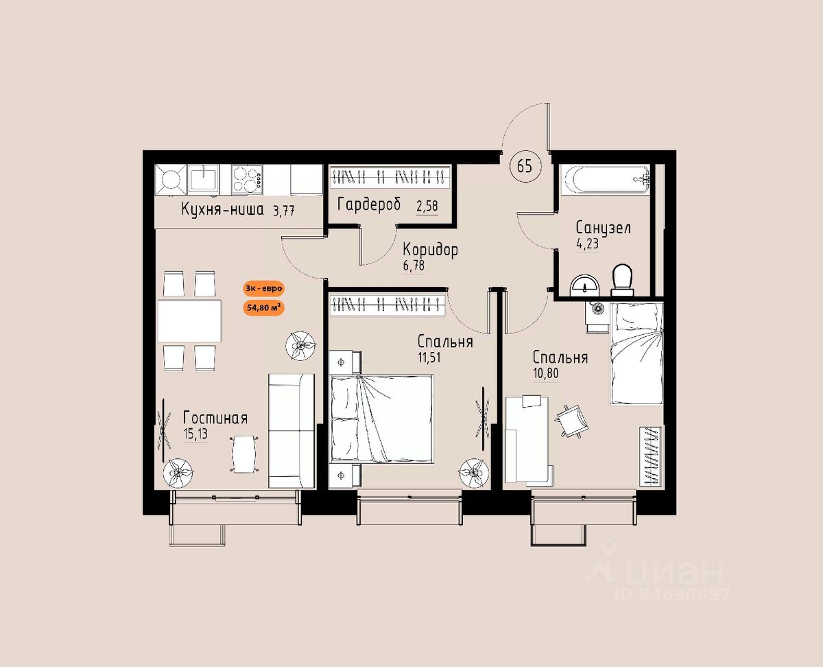 Продаётся 3-комнатная квартира в строящемся доме (Премьер парк), срок сдачи: III-кв. 2029, общей площадью 54.8 кв.м., на 16 этаже. Жилой комплекс ''Премьер Парк'' расположен в живописном микрорайоне Тихие Зори города Красноярска, неподалеку от реки Енисей и знаменитого железнодорожного моста, удостоенного гран-при наравне с Эйфелевой башней. Вблизи комплекса находятся такие достопримечательности, как фан-парк ''Бобровый Лог'', заповедник ''Столбы'' и река Базаиха с её живописной поймой. Чтобы провести время на природе понадобиться потратить всего несколько минут на дорогу.