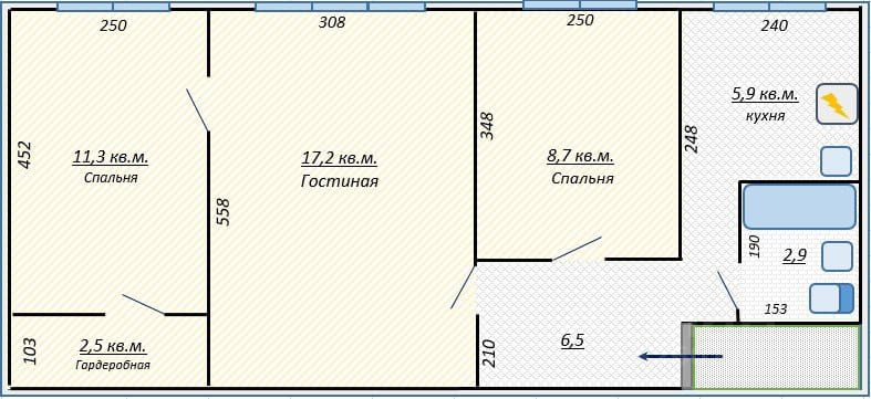 Продаётся трёхкомнатная квартира с изолированными комнатами в панельном доме 1964 года постройки. Общая площадь — 55 м², кухня — 6 м². В квартире требуется ремонт, что даёт возможность оформить её по своему вкусу.