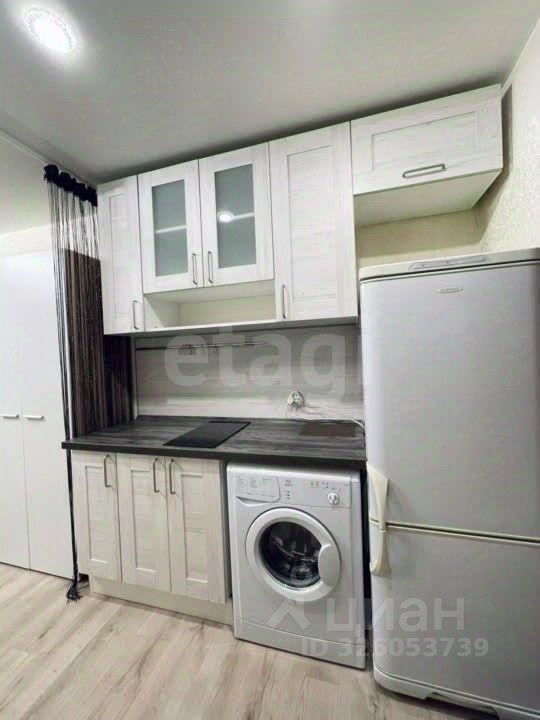 В квартире имеется: Диван, шкаф, стол, кухонный гарнитур, стиральная машинка, плита.