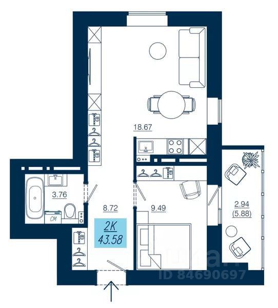 Продаётся 2-комнатная квартира в строящемся доме (Дом 4), срок сдачи: I-кв. 2026, общей площадью 43.58 кв.м., на 9 этаже. Новый жилой комплекс ''Уютные дома на Взлётке'' от Специализированного застройщика ООО ''Уютный дом 2014'' расположен по адресу: г. Красноярск, по ул. Аэровокзальная.