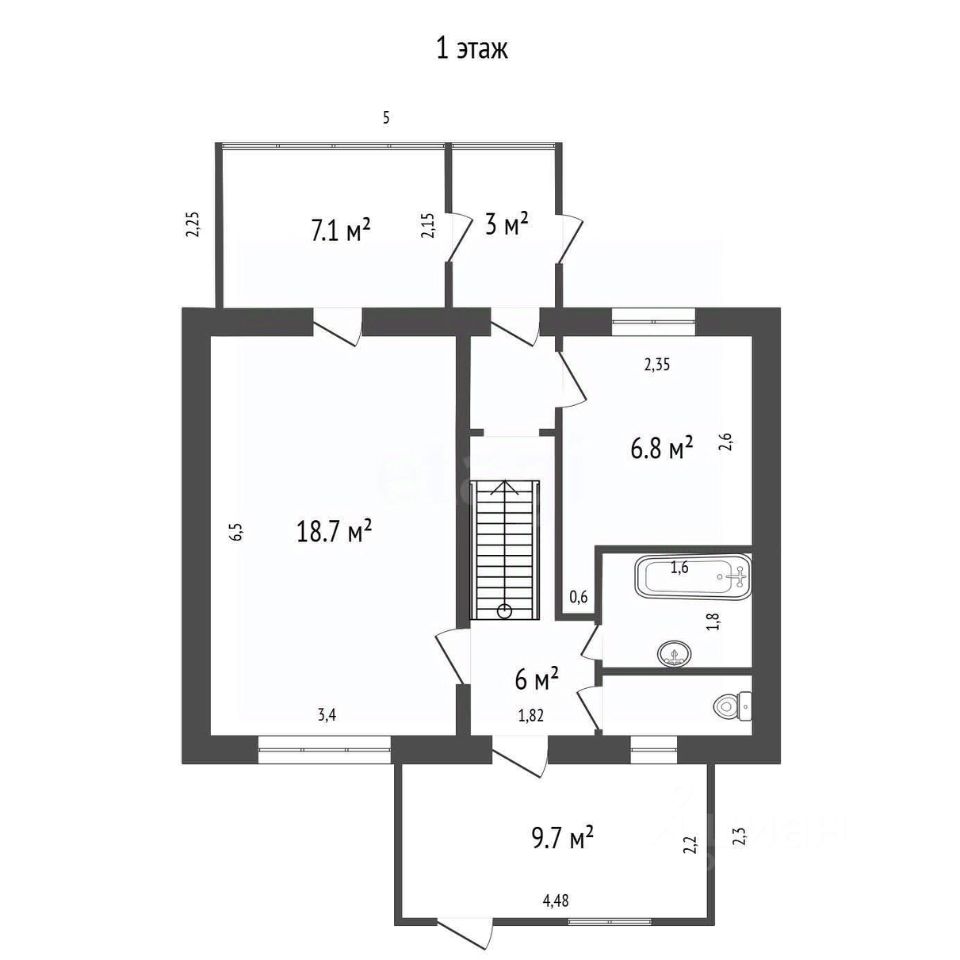 На 1м этаже находятся зал, кухня с выходом в летнюю комнату, туалет, ванна. На втором этаже 3 спальные комнаты.