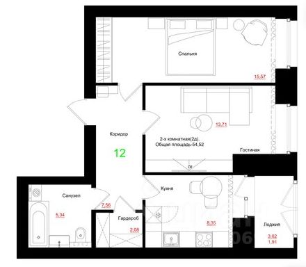 Продаётся 2-комнатная квартира в строящемся доме (Дом 5.4), срок сдачи: IV-кв. 2027, общей площадью 54.52 кв.м., на 6 этаже. Новый жилой комплекс ''Соцветие'' от группы компаний ''Арс-Групп'' расположен по адресу: г. Красноярск, по ул. Азовская.