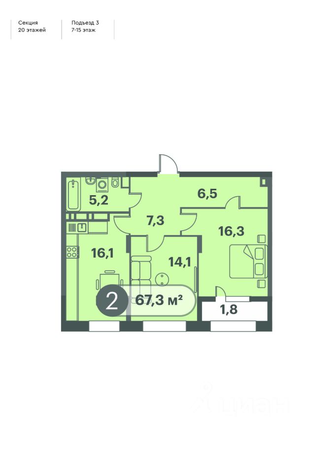 продам 2-к, Семафорная, 1 стр.10 095 000 ₽