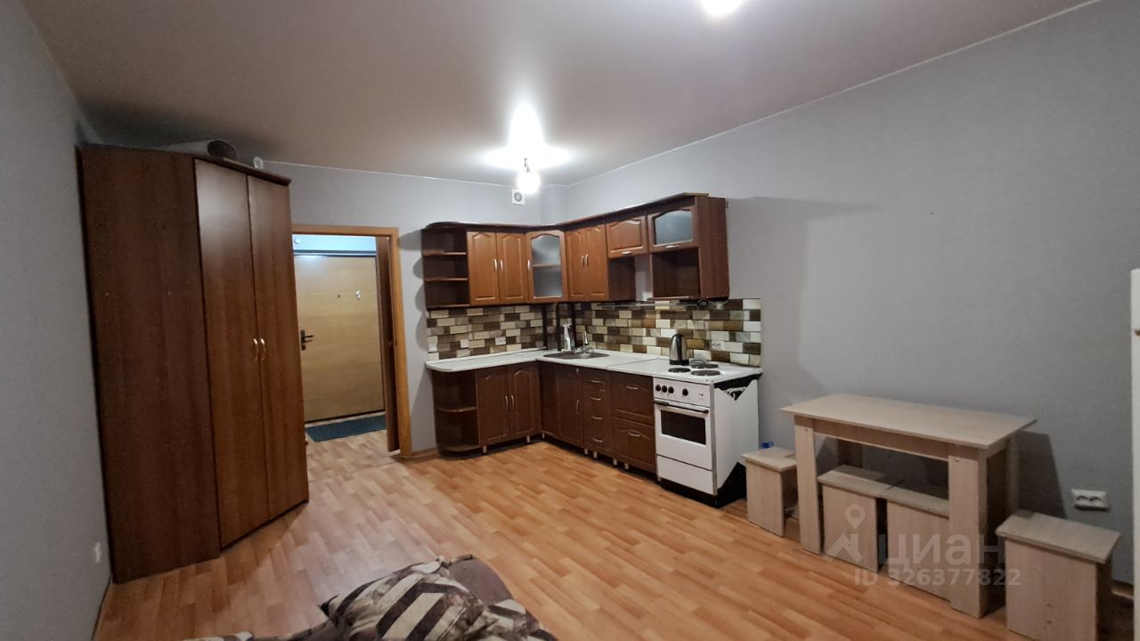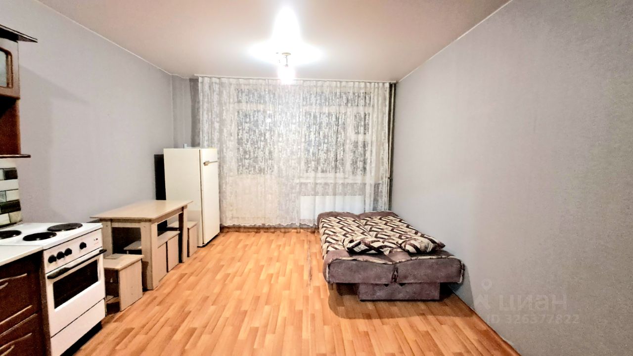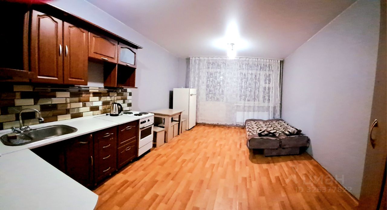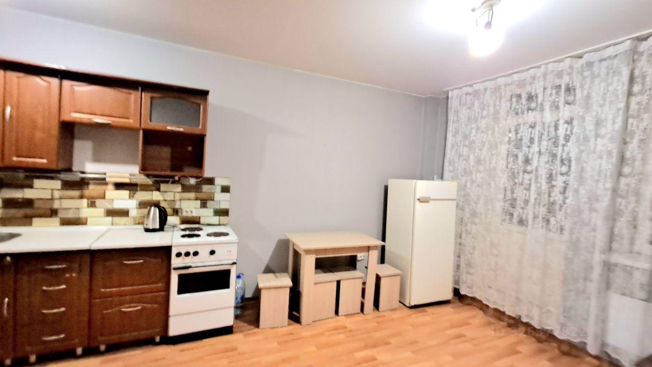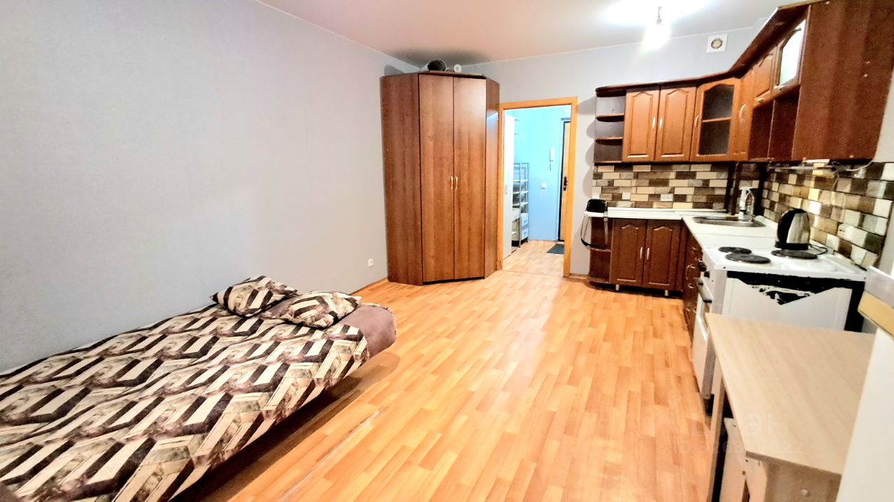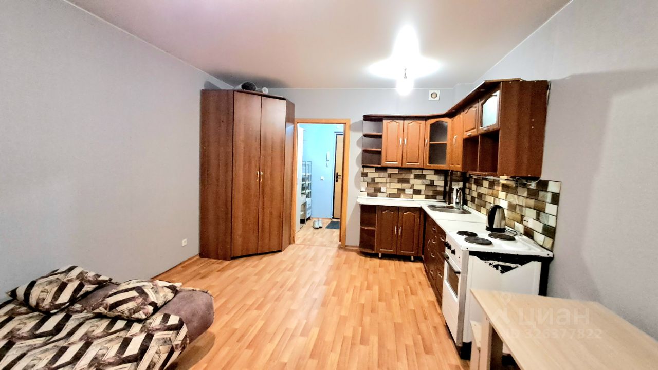 В квартире выполнен косметический ремонт. Пространство студии грамотно организовано: есть удобная зона для отдыха и кухня площадью 3 кв. м с необходимой мебелью. Стоит отметить наличие техники — холодильника и стиральной машины. Санузел совмещенный, оборудован ванной. Дополнительное преимущество — наличие лоджии, где можно организовать уютный уголок для отдыха.