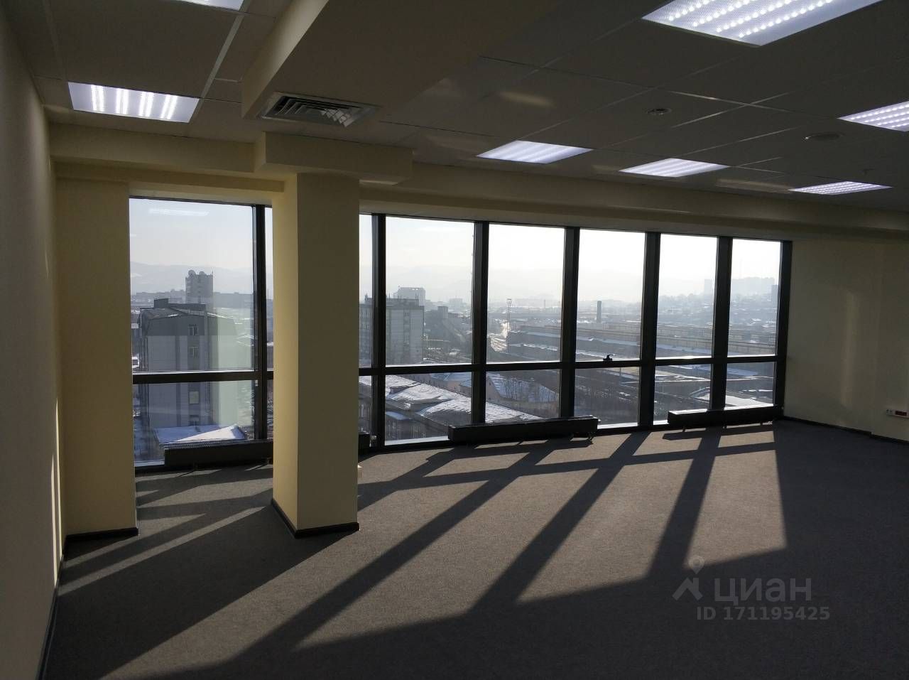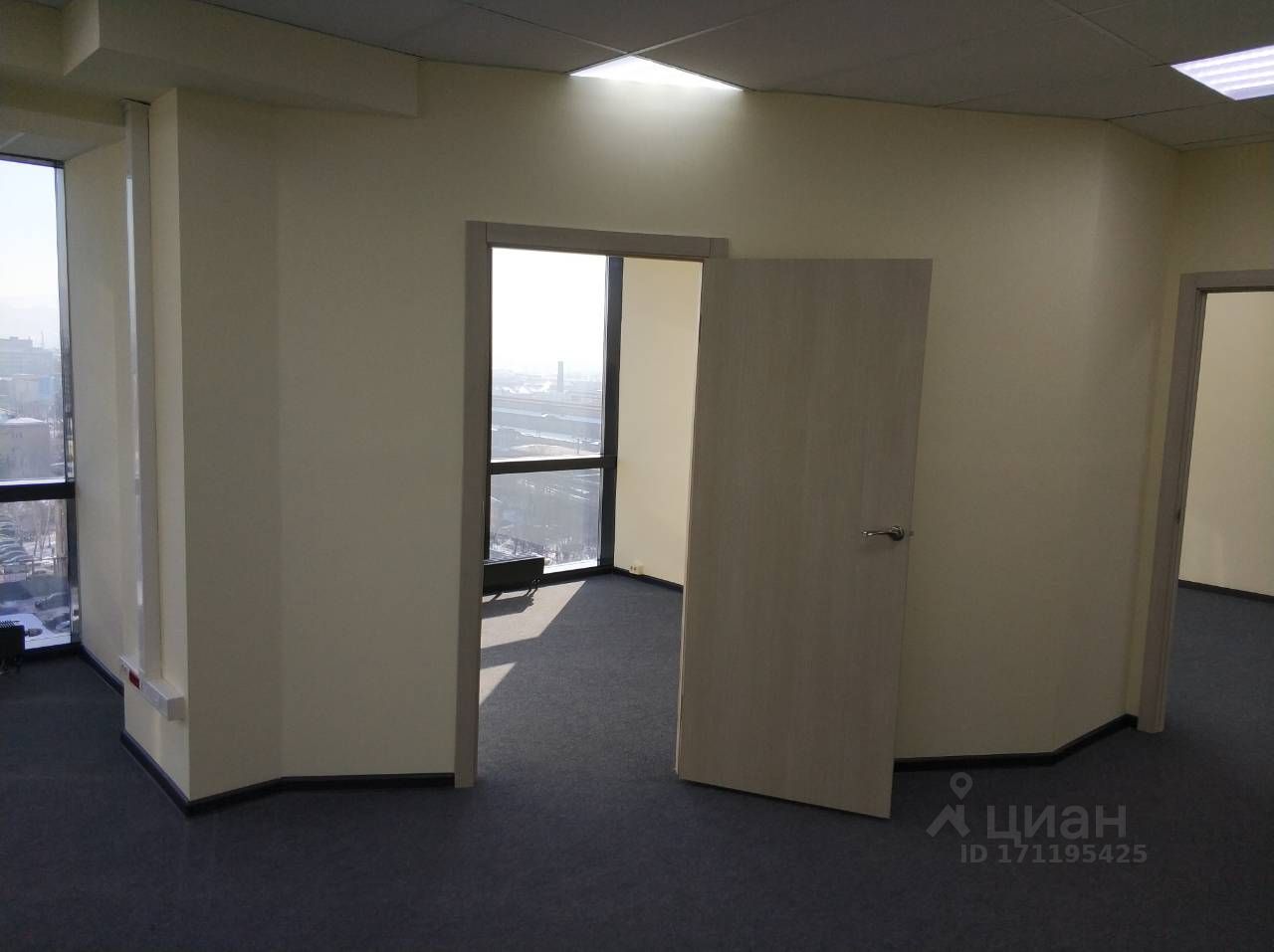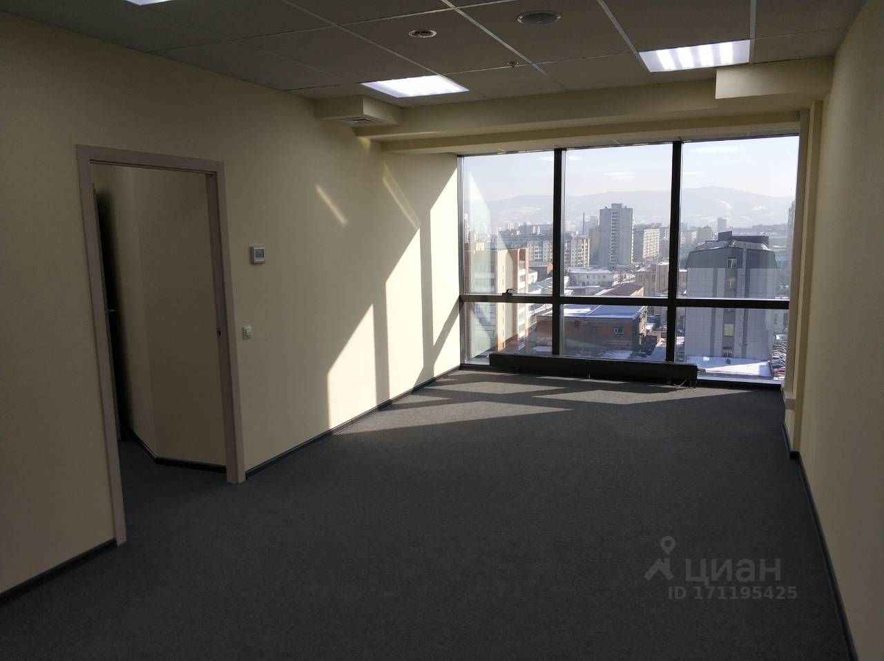 Офис 117,1 кв.м. Арендная ставка: 1 750 руб./кв.м. Панорамные окна с видом на город Кабинет руководителя — 25 кв.м. Два санузла (один в общем помещении, второй — в кабинете руководителя) Светлое, статусное пространство, идеально для представительного офиса