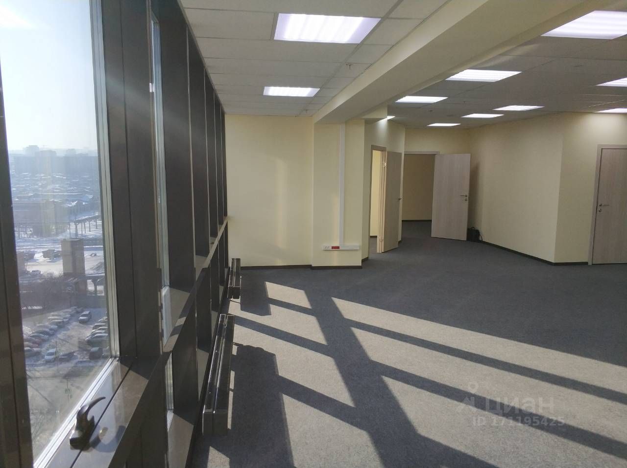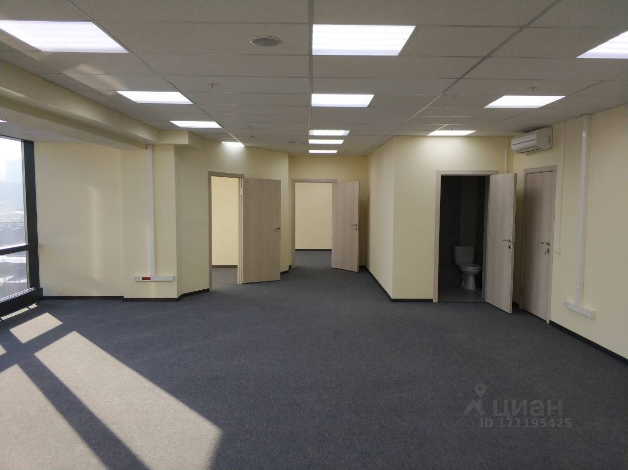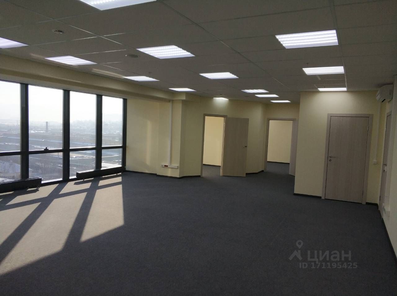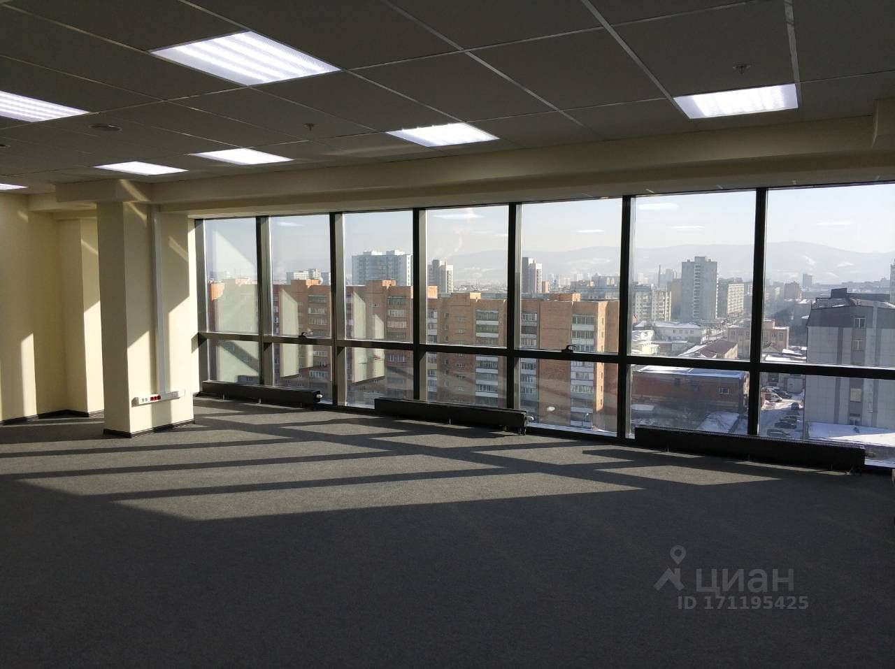 Офис 117,1 кв.м. Арендная ставка: 1 750 руб./кв.м. Панорамные окна с видом на город Кабинет руководителя — 25 кв.м. Два санузла (один в общем помещении, второй — в кабинете руководителя) Светлое, статусное пространство, идеально для представительного офиса