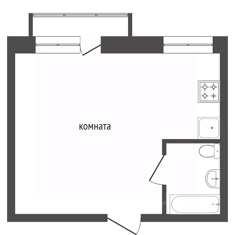 Кухня площадью 6 м² оснащена всем необходим для постоянного проживания. В комнате есть спальное место. Совмещенный санузел.