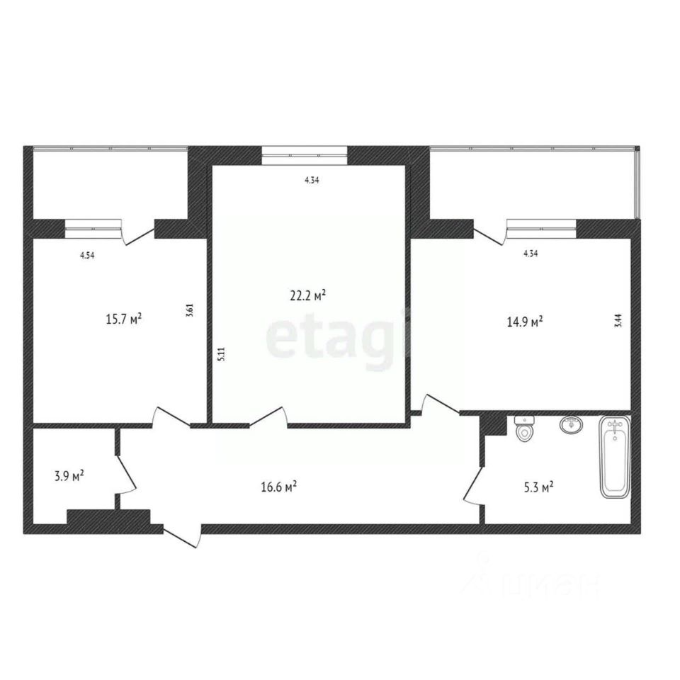 О КВАРТИРЕ Квартира имеет большую гостиную площадью 22,2 м. кв., спальню - 15.7 м.кв. и просторную кухню - 14.9 м2. В квартире имеется 2 остекленных лоджии. Вся имеющаяся в квартире мебель остается новому владельцу без дополнительной оплаты.