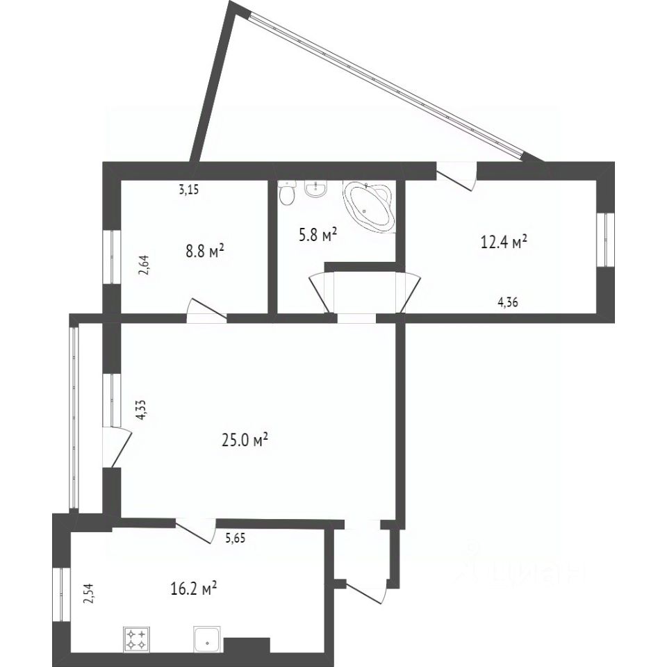 Остаётся в квартире • Кухонный гарнитур • Встроенная техника: холодильник, посудомоечная машина, духовка, варочная панель, вытяжка • Водонагреватель • Мебель в санузлах • Люстры и шторы