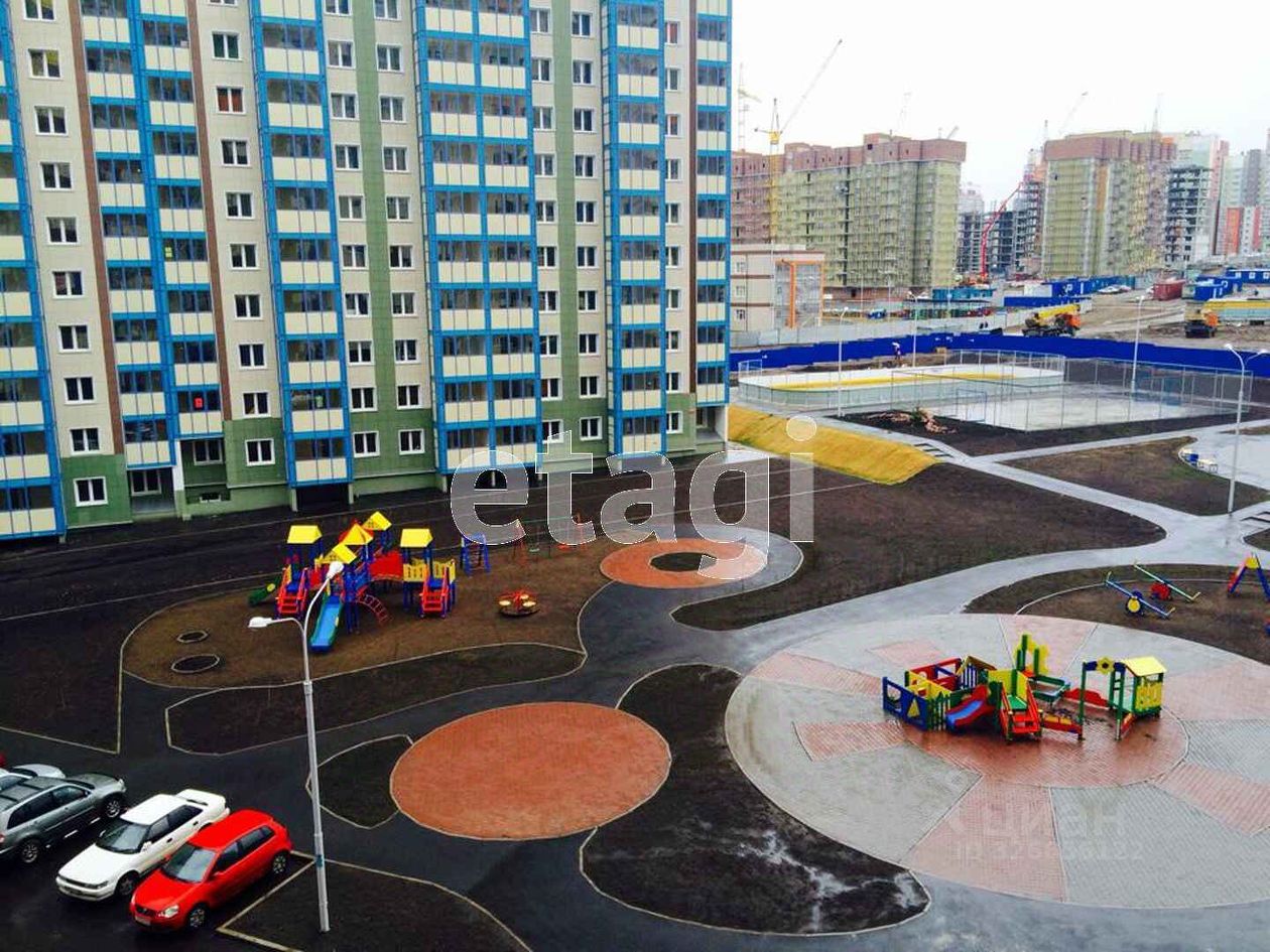 Во дворе — благоустроенная территория с детскими площадками и зонами отдыха, с внешней стороны дома — большой наземный паркинг. Выход из подъезда — на обе стороны дома.