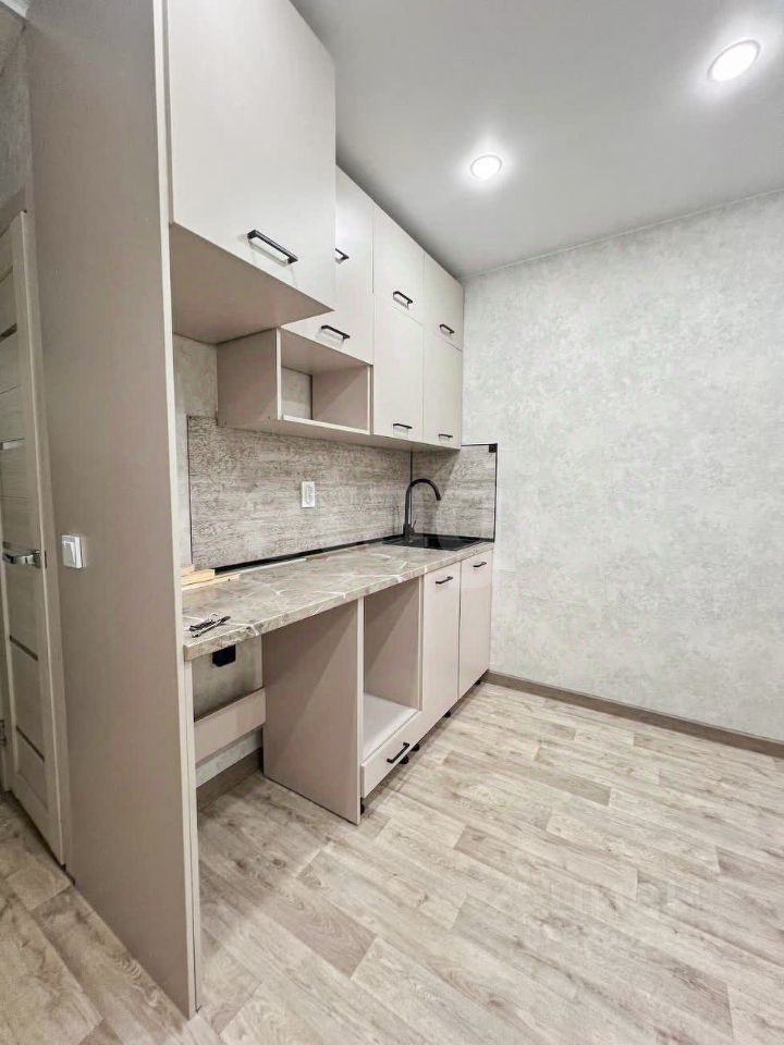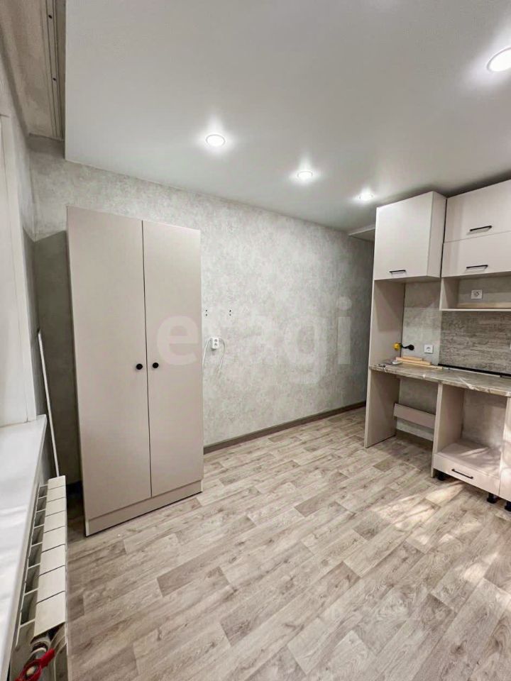 В квартире имеется только кухонный гарнитур и шкаф.
