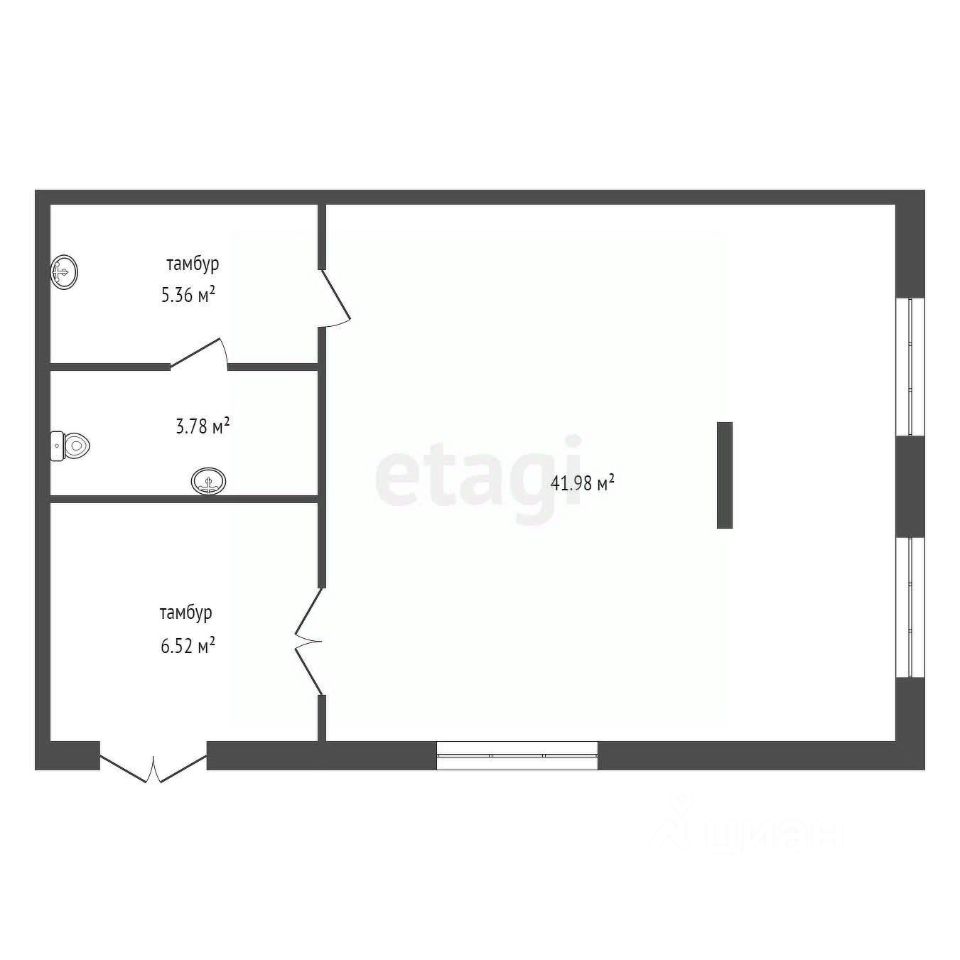 Помещение имеет свободную планировку, это большой плюс, вы можете распланировать его, как вам необходимо. Есть просторный тамбур.