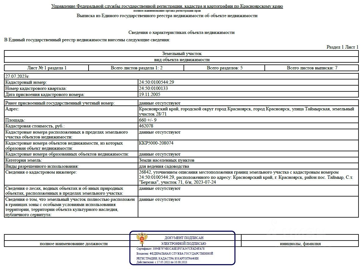 Кадастровый номер: 24:50:0100544:29