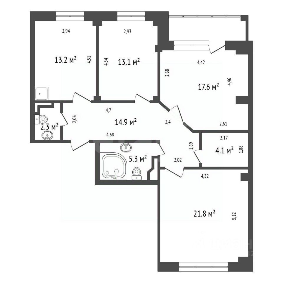 Продается просторная трехкомнатная квартира по адресу: Россия, Красноярск, Светлогорская улица, 11А. Общая площадь квартиры — 92.3 кв.м, кухня — 13 кв.м. Квартира расположена на 8 этаже 10-этажного кирпичного дома, построенного в 2014 году.