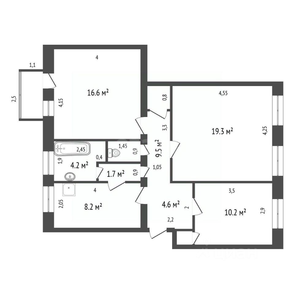 В квартире большая прихожая, совмещенная с гардеробной (можно отгородить и переделать обратно в комнату), просторный зал, большая спальная с балконом во двор. Большой санузел 8 кв.м., где имеется как ванная, так и душевая, имеет собственное окно во двор.