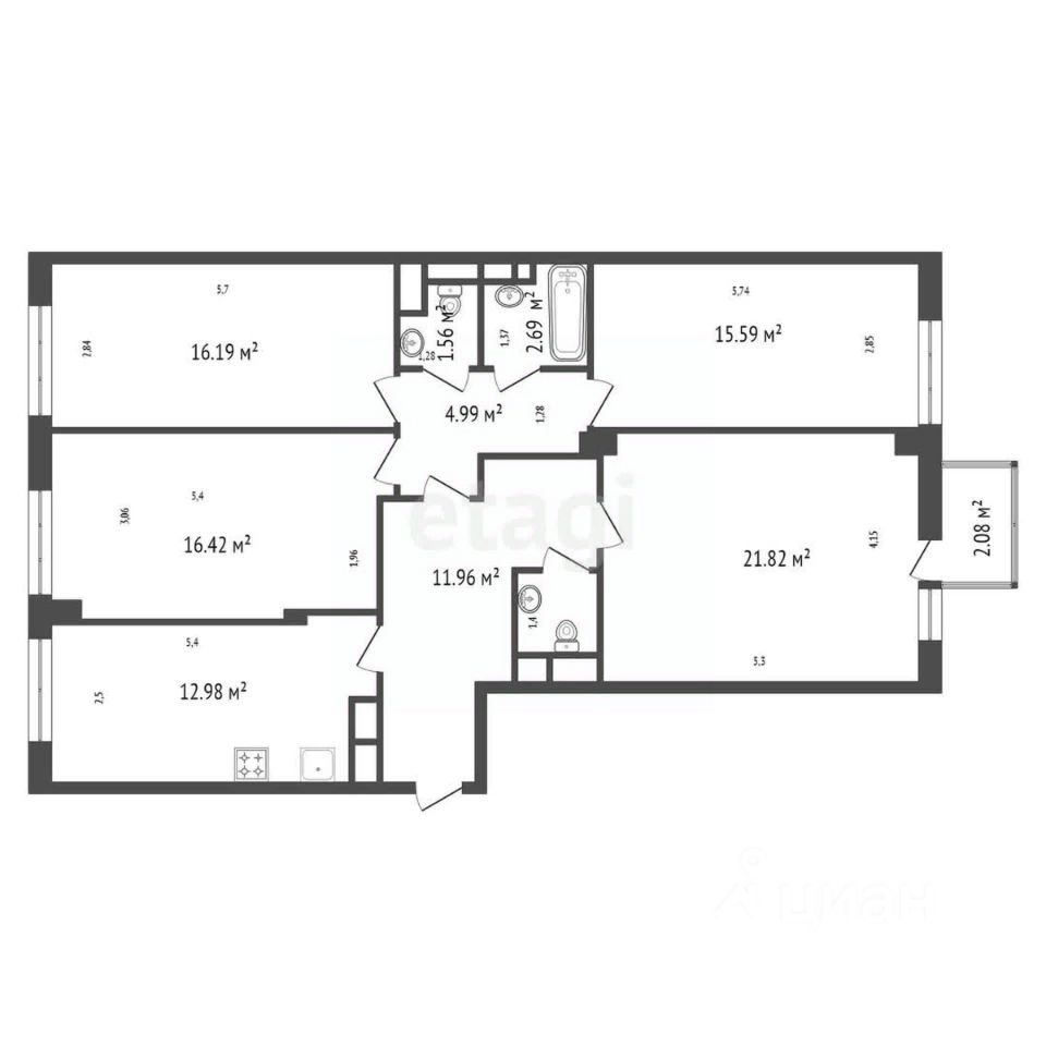 Четырехкомнатная квартира на 24 этаже монолитно-каркасного дома предлагает к продаже не просто жилье, а готовое решение для комфортной жизни. Общая площадь с рациональной планировкой включает четыре изолированные комнаты площадью 15.59, 16.19, 16.42 и 21.82 кв.м, что обеспечивает личное пространство для каждого члена семьи. Три спальни отделены от гостевой зоны, создавая приватную и тихую атмосферу. Просторная кухня 12.98 кв.м функционально организована. В квартире два санузла: полностью облицованный кафелем гостевой с местом для стиральной машины и хозяйский санузел с бойлером. Во всех комнатах установлены сплит-системы для поддержания оптимального микроклимата. Ключевым преимуществом является видовая панорама на город, особенно эффектная в вечернее время.